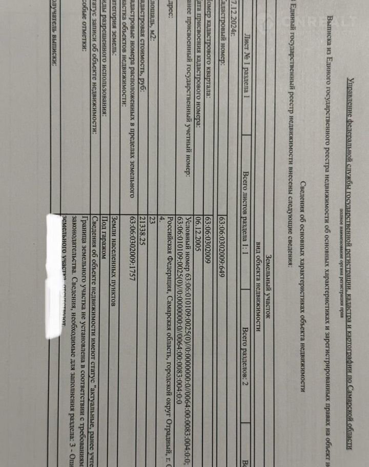 Кирпичный гараж, 23 м2, на продажу в Отрадном