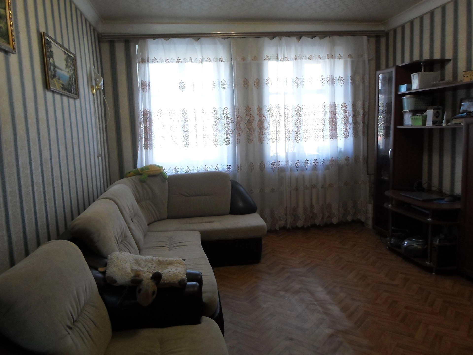 Продаём 2-х комнатную квартиру общей площадью 44, 5 кв. м., теплая, окна на обе стороны дома. В квартире застекленный балкон, колонка-автомат и счётчик на воду, мощная железная дверь. Всю мебель, встроенную кухню, холодильник, стиральную машину можем оставить. Хорошее местоположение, рядом магнит, поликлиника, большой рынок, школа, площадь, парк. Во дворе есть сарай с погребом, место для парковки. Торг.