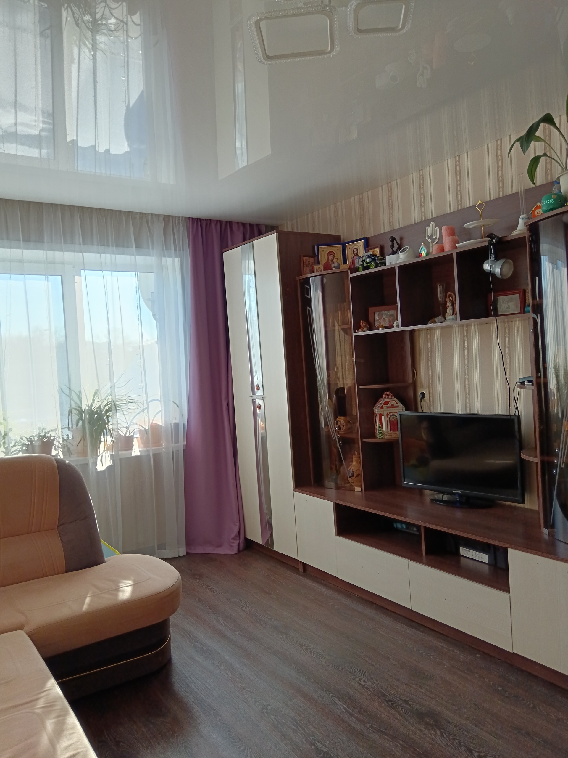 - Натяжной потолок в зале.