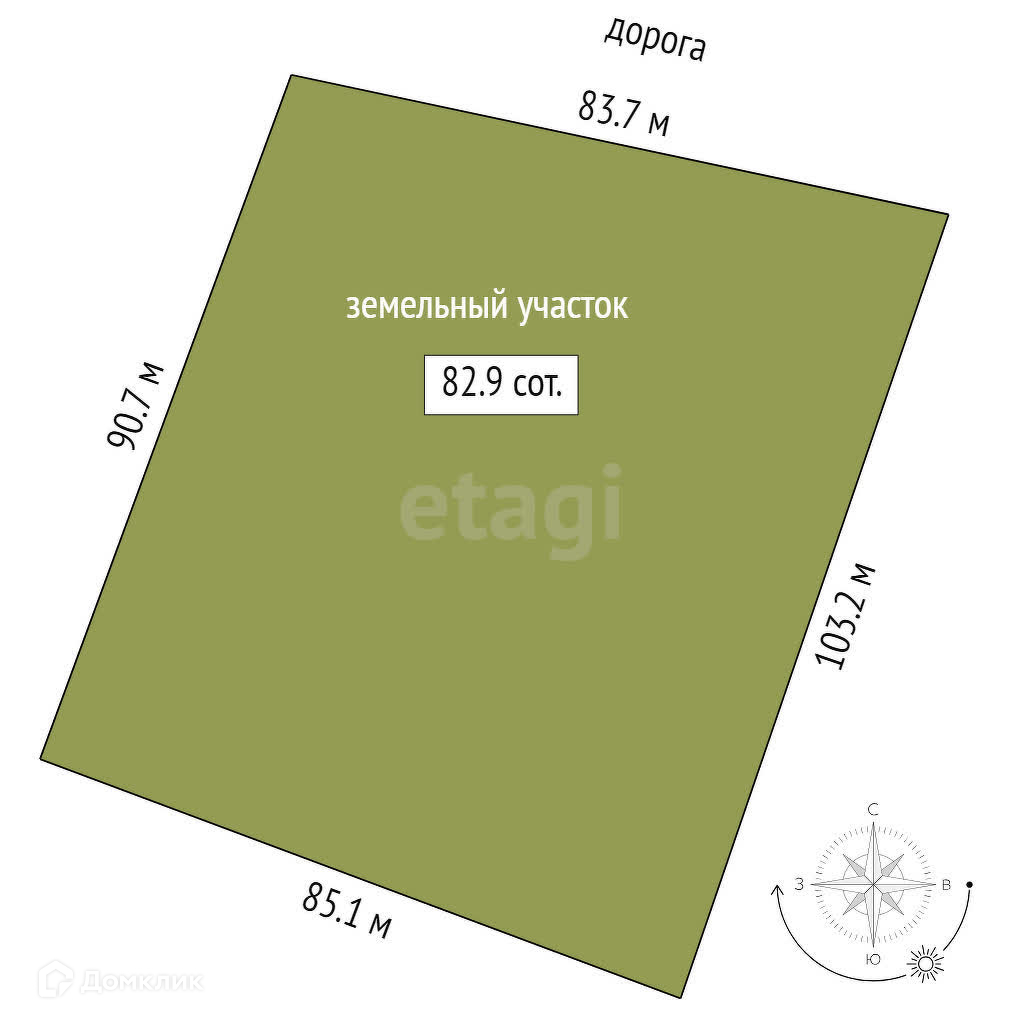 Земельный участок 82,9 сотки.