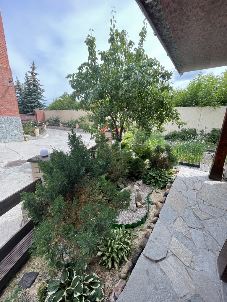 Дом S=330 кв.м. на земельном участке S=863 кв.м. имеет три полноценных этажа, теплый большой гараж на 4 машинамест, гостевую стоянку для авто, отдельно стоящая баня с гостевой комнатой и бассейном, просторная терраса для барбекю и отдыха. Забор из кирпича по периметру всего участка.