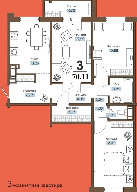 Общая площадь 70.11 м2