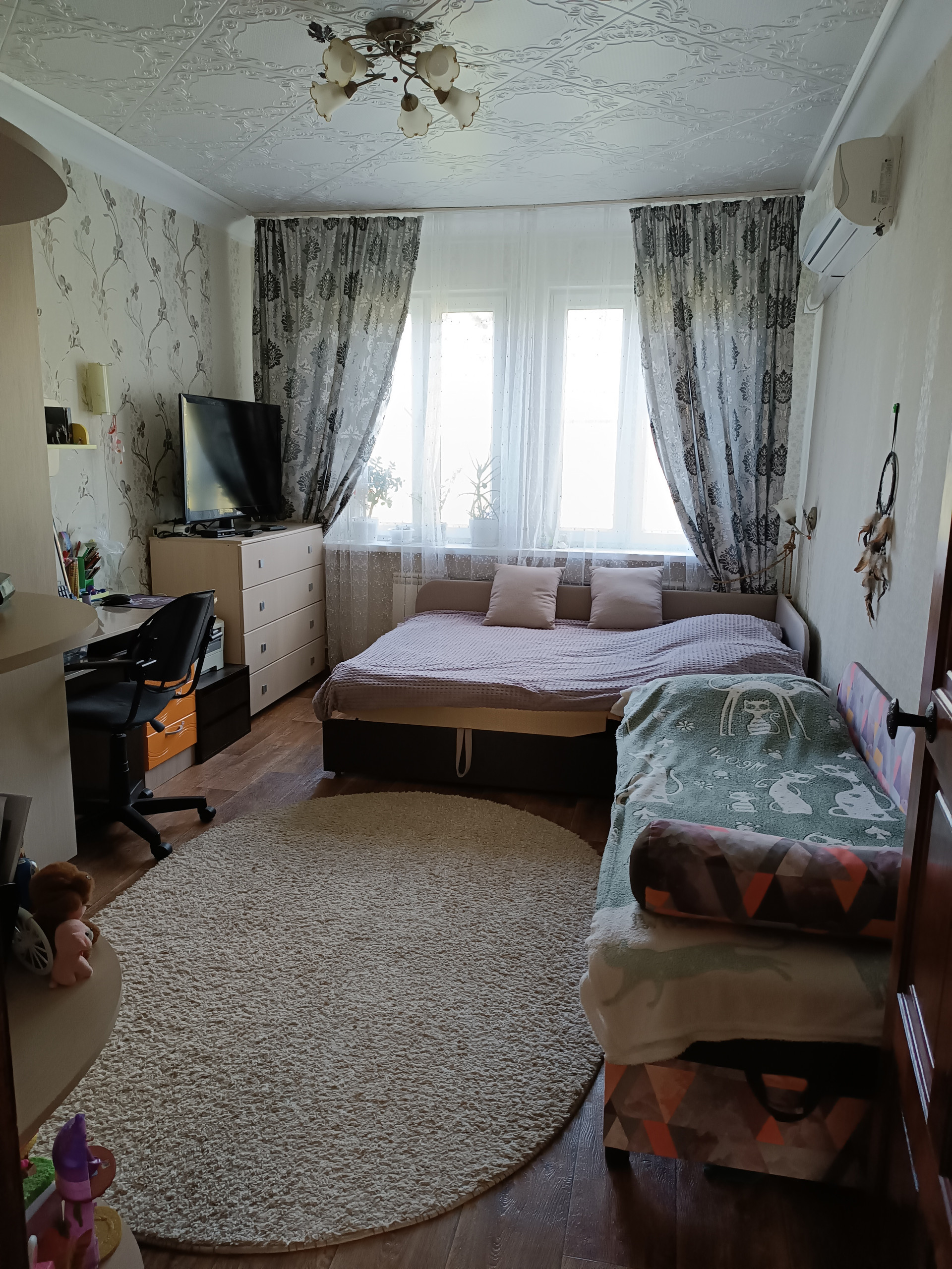 Квартира расположена в спокойном, тихом районе. С парковкой автомобиля проблем нет. Установлены е/о, поменяны межкомнатные двери, новая входная дверь с шумоизоляцией, приборы учёта ГВСи ХВС.  В квартире сделан косметический ремонт. Чистая, ухоженная квартира. Можно заехать и первое время спокойно жить. Остаётся кухонный гарнитур, водонагреватель.