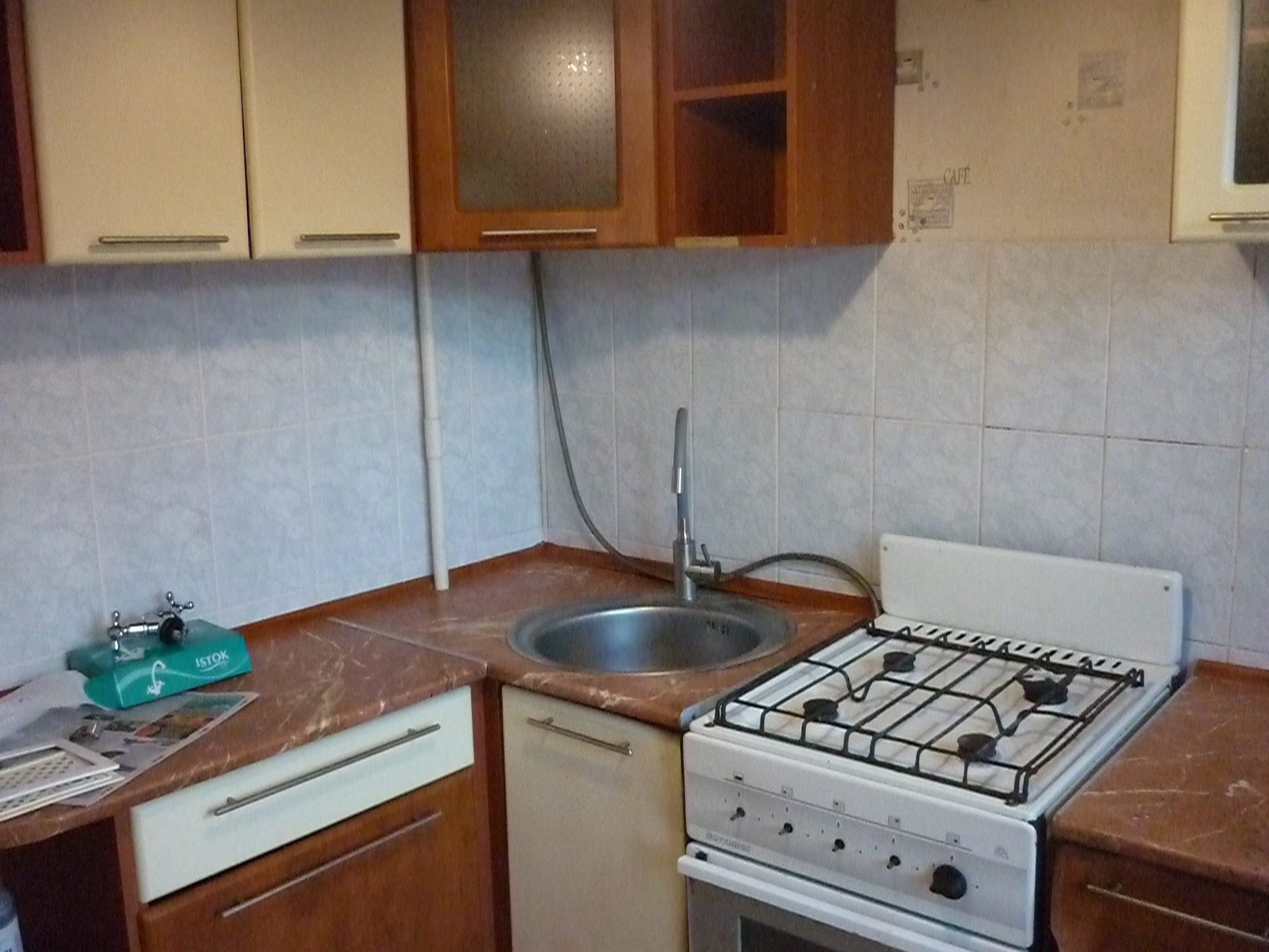 Квартира в жилом состоянии, требуется небольшой косметический ремонт. Смежные, но не тесные, комнаты, вместительная кладовая. Установлены счетчики учета потребления горячей и холодной воды. Произведены замена окон и балконной группы на пластиковые. Покупателю остается кухонный гарнитур, мебель по договоренности.