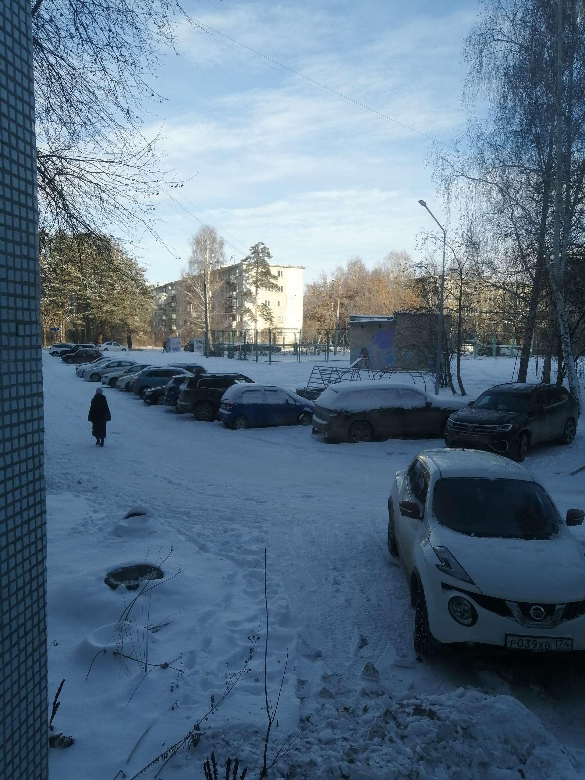 Во дворе: детская площадка, стоянка под авто.