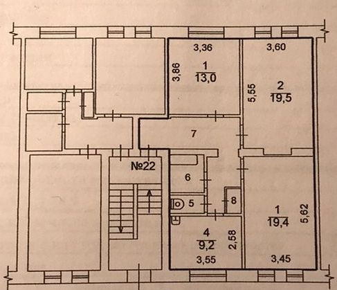 Жилая площадь 51.2 м2