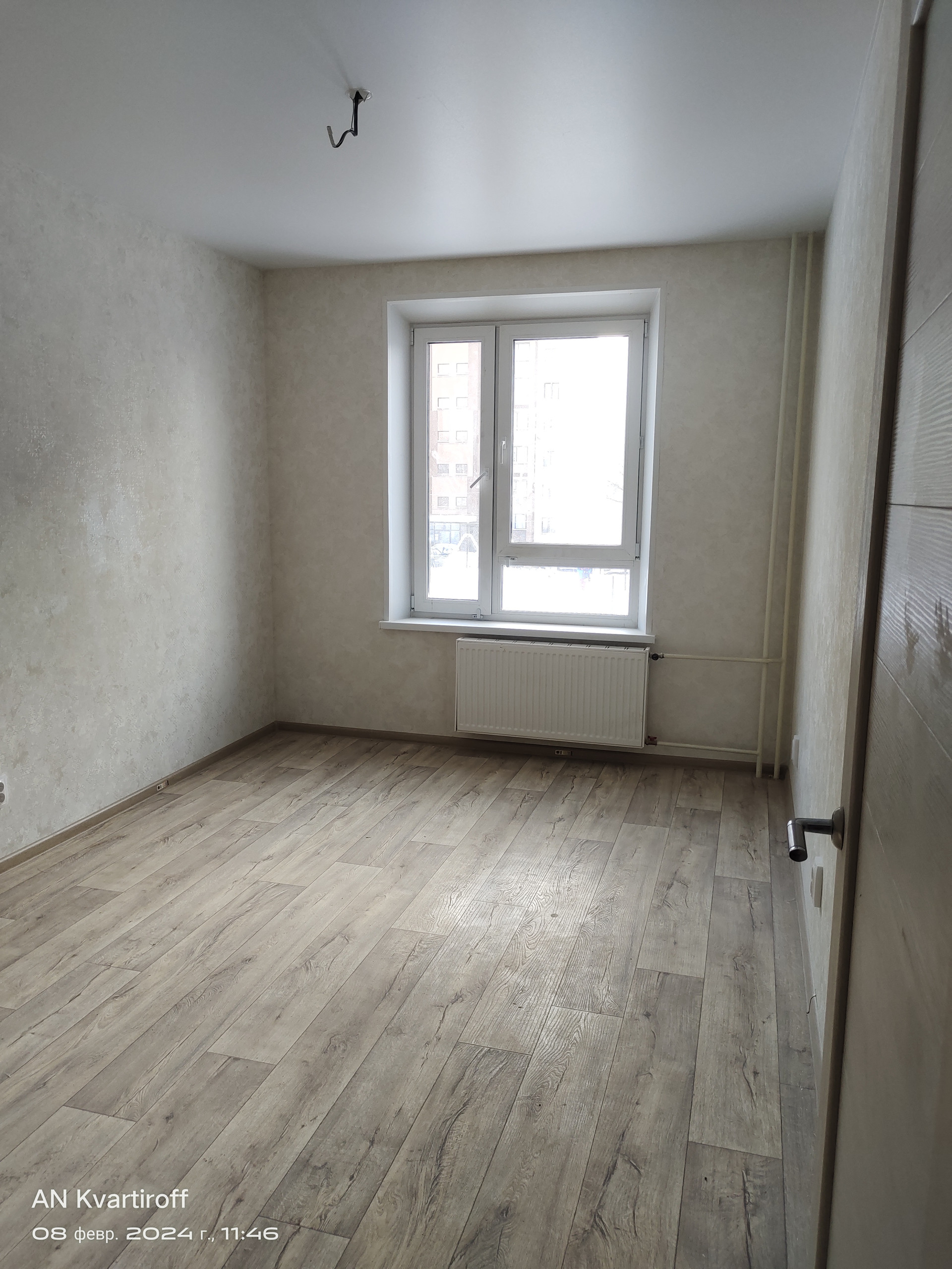 Новая квартира с отделкой от застройщика. Полноценная однокомнатная с балконом и нишей под гардеробную. Окна во двор выходят. Есть выбор этажей. Балконы застеклены, полы – линолеум, потолки натяжные, санузлы: кафель только на полу, без установки сантехники. Установлены межкомнатные двери, хорошая входная дверь. Можно приобрести по семейной ипотеке и с  господдержкой. Цена указана по ипотеке под 8%