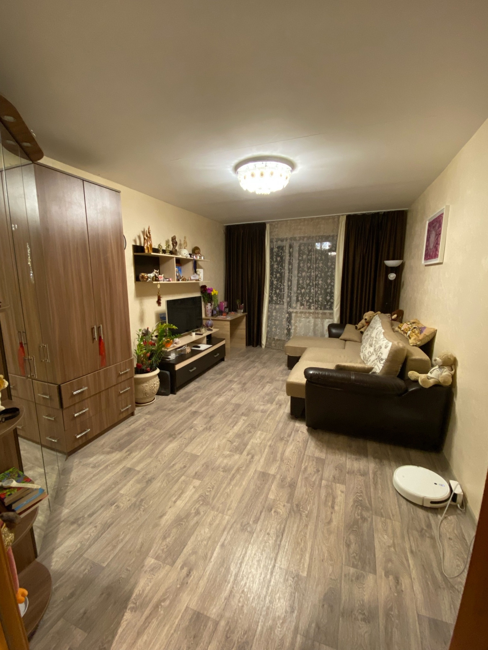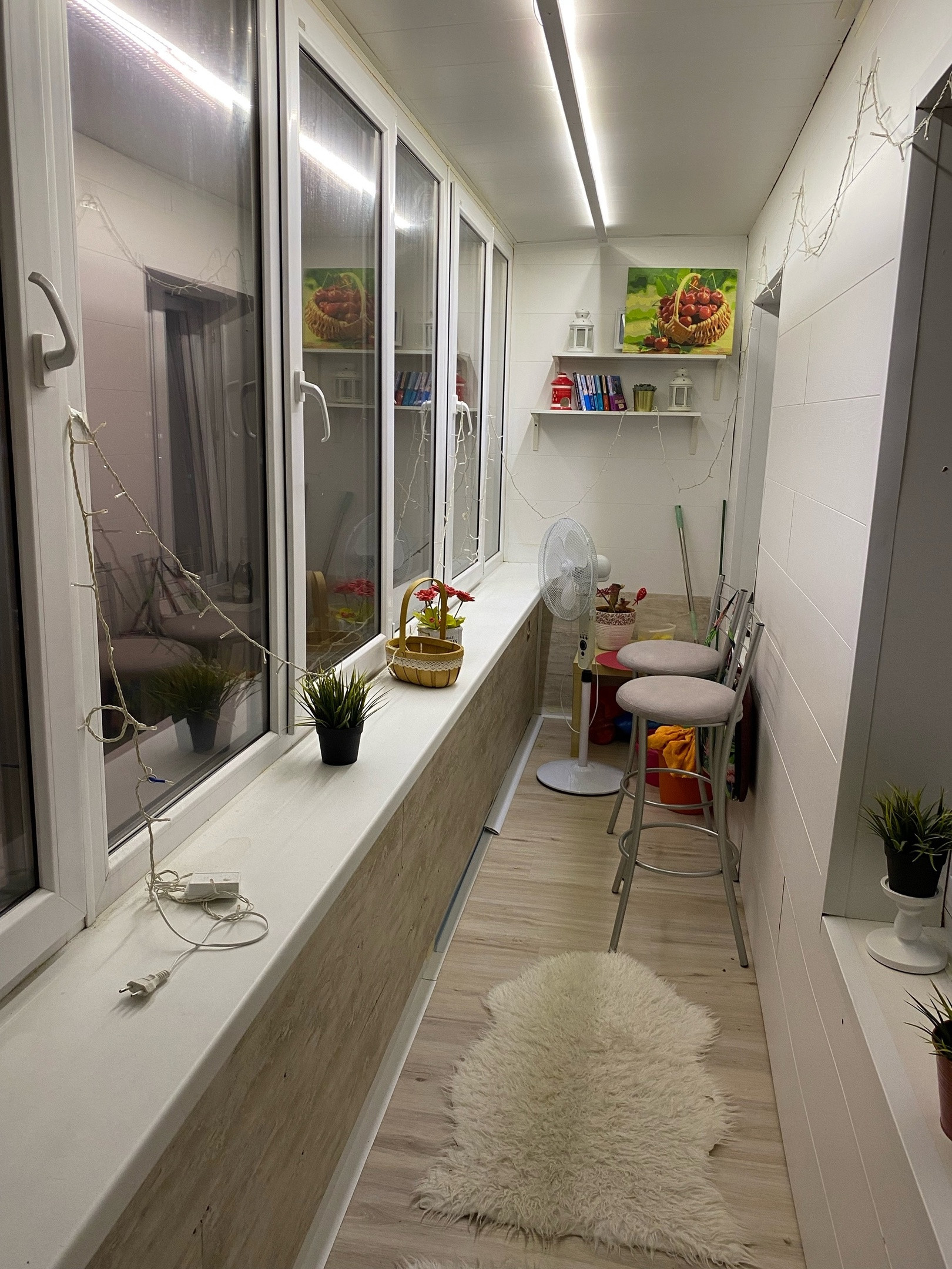 Балкон во всю ширину квартиры, с ремонтом, двойной стеклопакет, тёплый пол.