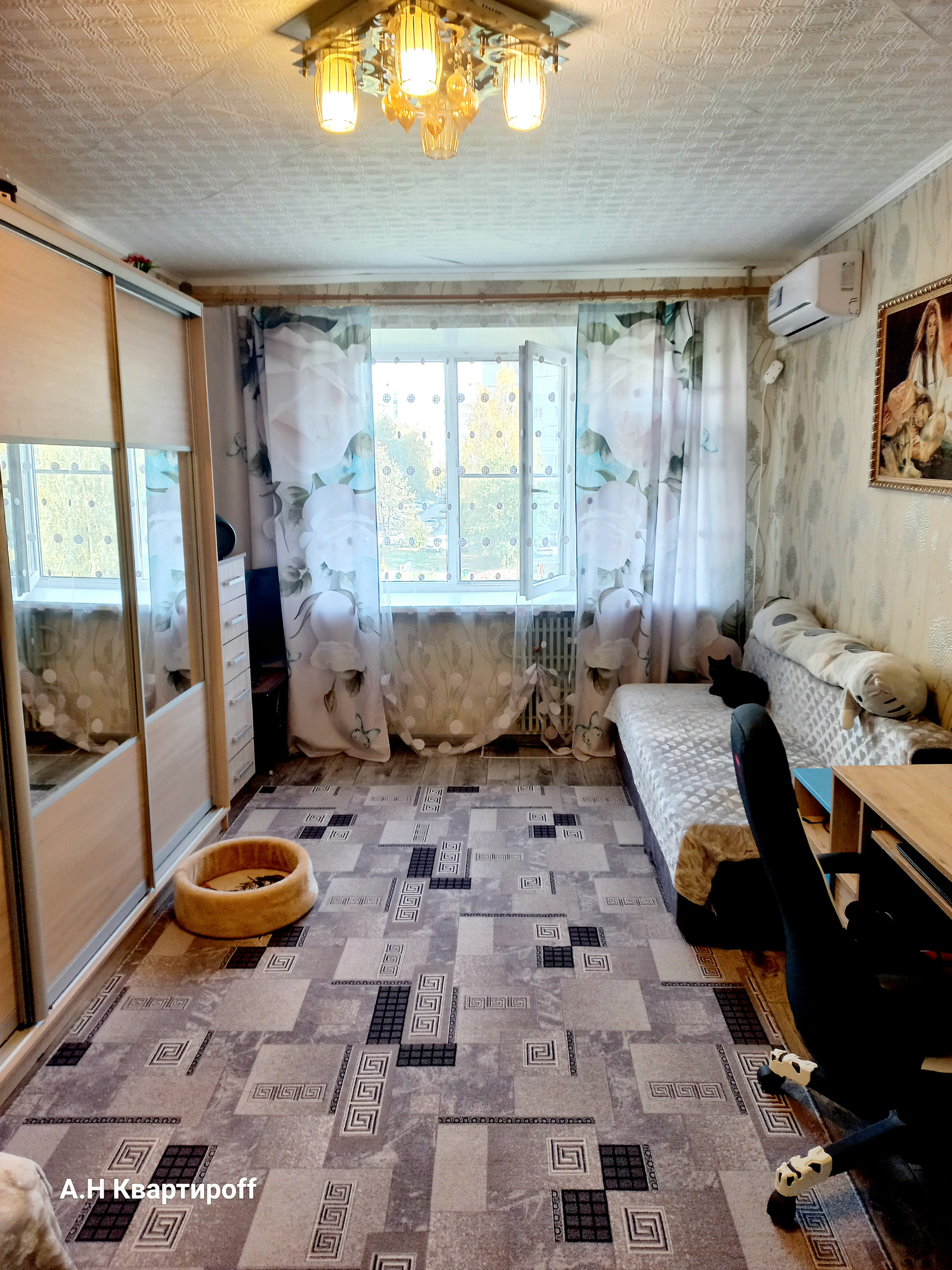 Новым собственникам остается кухонный гарнитур , кондиционер с сплит-системой.