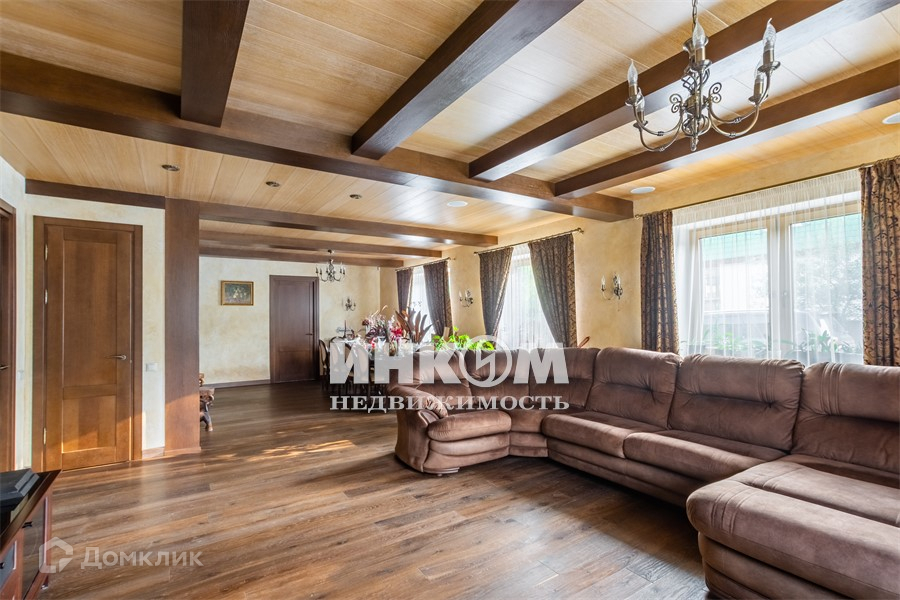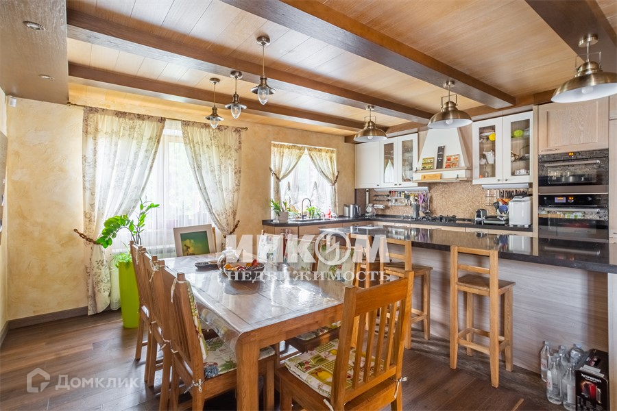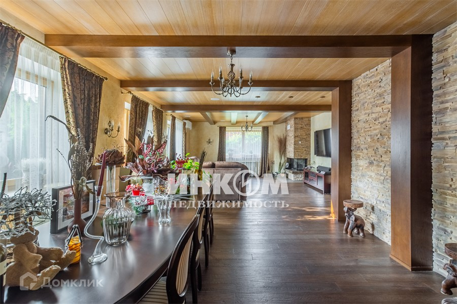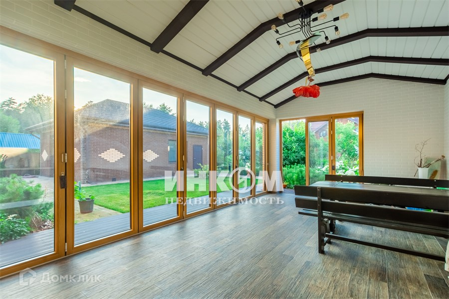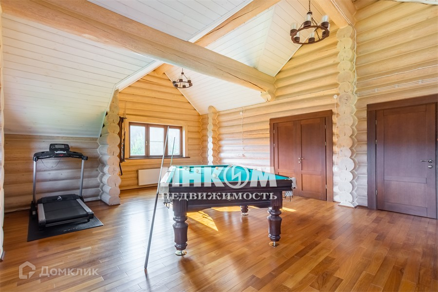 имеет площадь 156 метров, аналог. Построен из клеенного бруса 260 мм. Во всех строениях алюминево-деревянные окна производства Германии. Мягкая кровля производства германии. Бильярдная комната с каменным столом для русского бильярда.