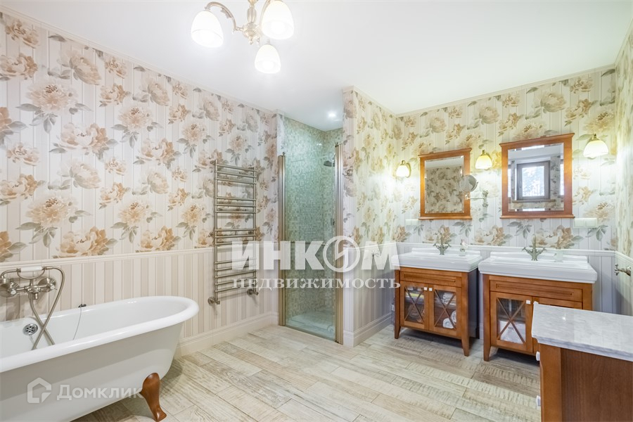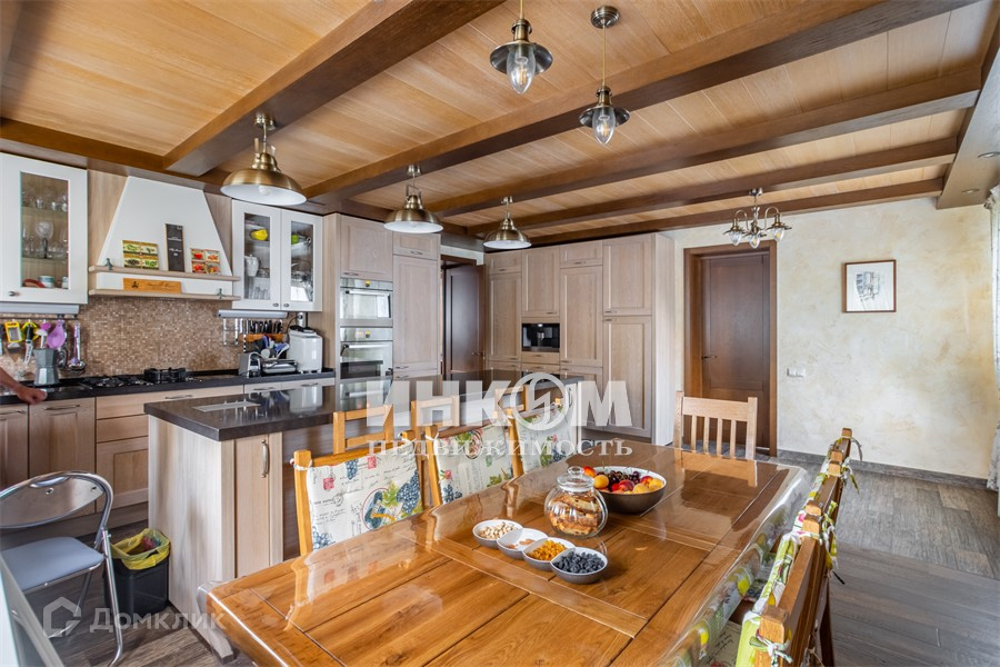 В основном доме 259 кв.м.: на 1-м этаже холл, кухня, совмещенная с гостиной с камином, пристройка летняя с кухней, два санузла(один совмещенный и один нет) на 2-м этаже 3-и спальни с двумя санузлами и двумя большими гардеробными комнатами, на третьем этаже игровая детская комната(мансардный этаж).