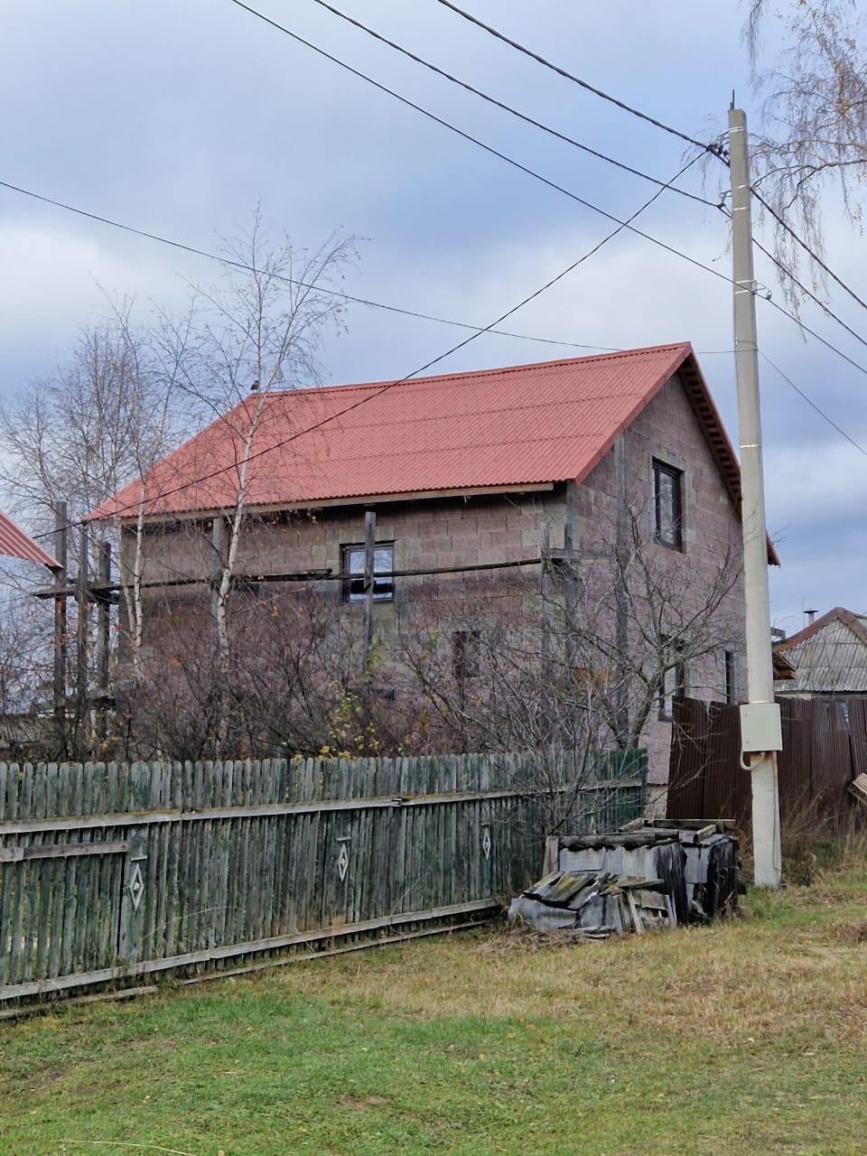 Дом ДВУХэтажный, из керамзитных блоков, крыша оцинкованное железо.