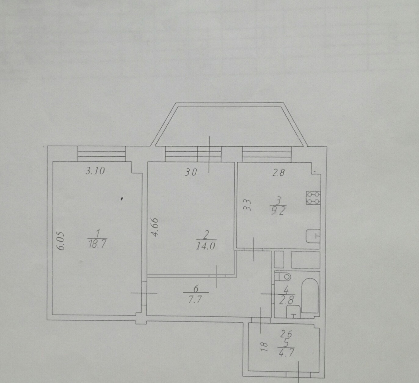 Балкон, лоджия 1 балкон