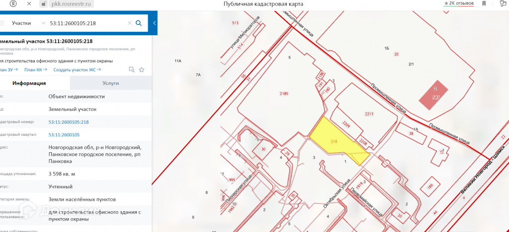 Кадастровый номер: 53:11:2600105:218