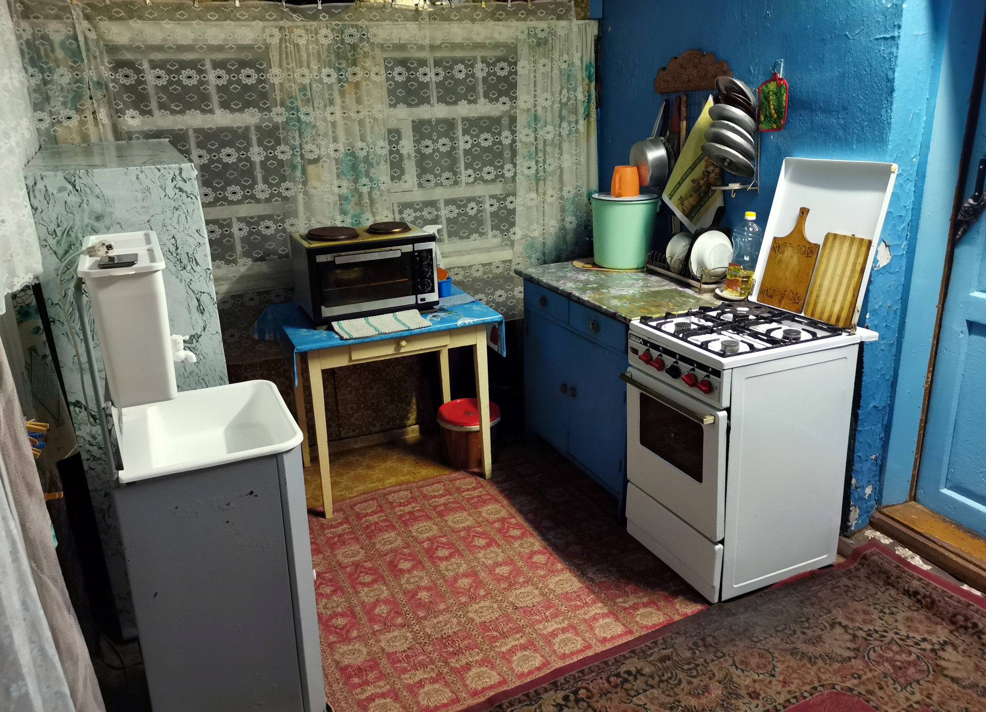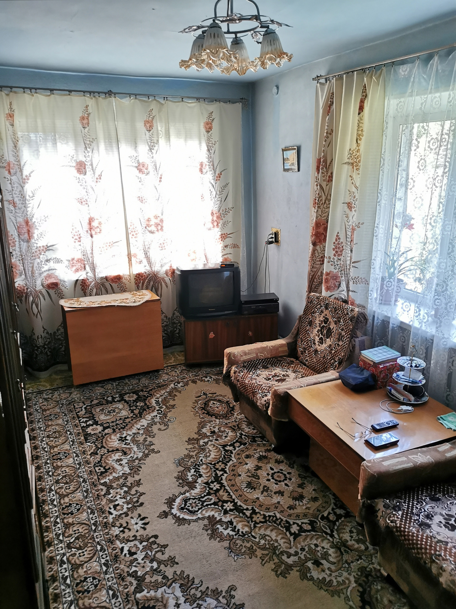 Трёхкомнатная квартира 48,7 кв. м с земельным участком 6 соток в двухквартирном кирпичном доме. Централизованное холодное водоснабжение, отопление местное (котёл в печке + котёл электрический регулируемый 1,5 кВт + сетевой насос), пластиковые окна, погреб, газовая плита (баллон 50 л на веранде), электрический водонагреватель, ассенизация. К дому пристроена деревянная крытая веранда площадью около 11 кв. м (не входит в общую).