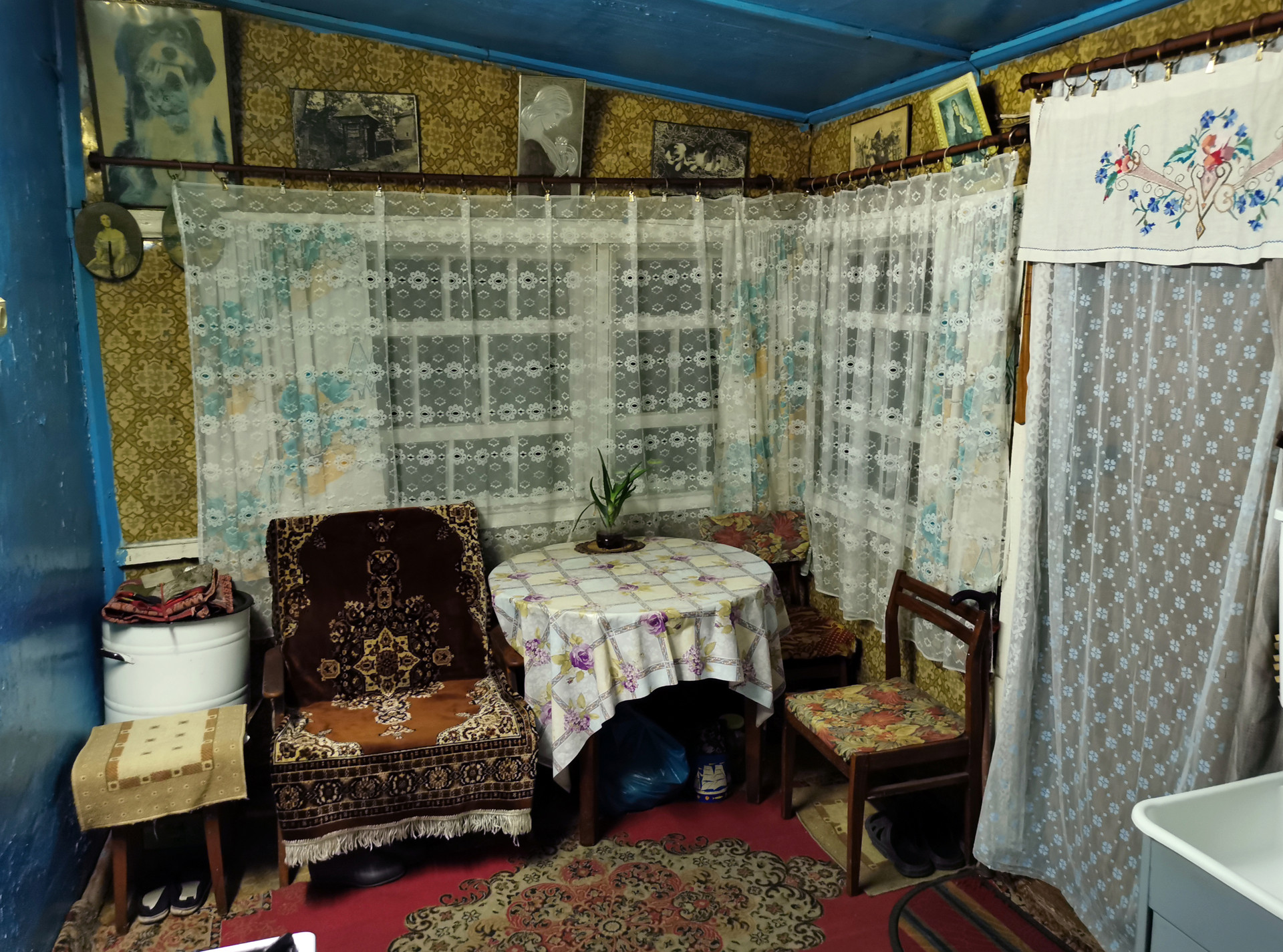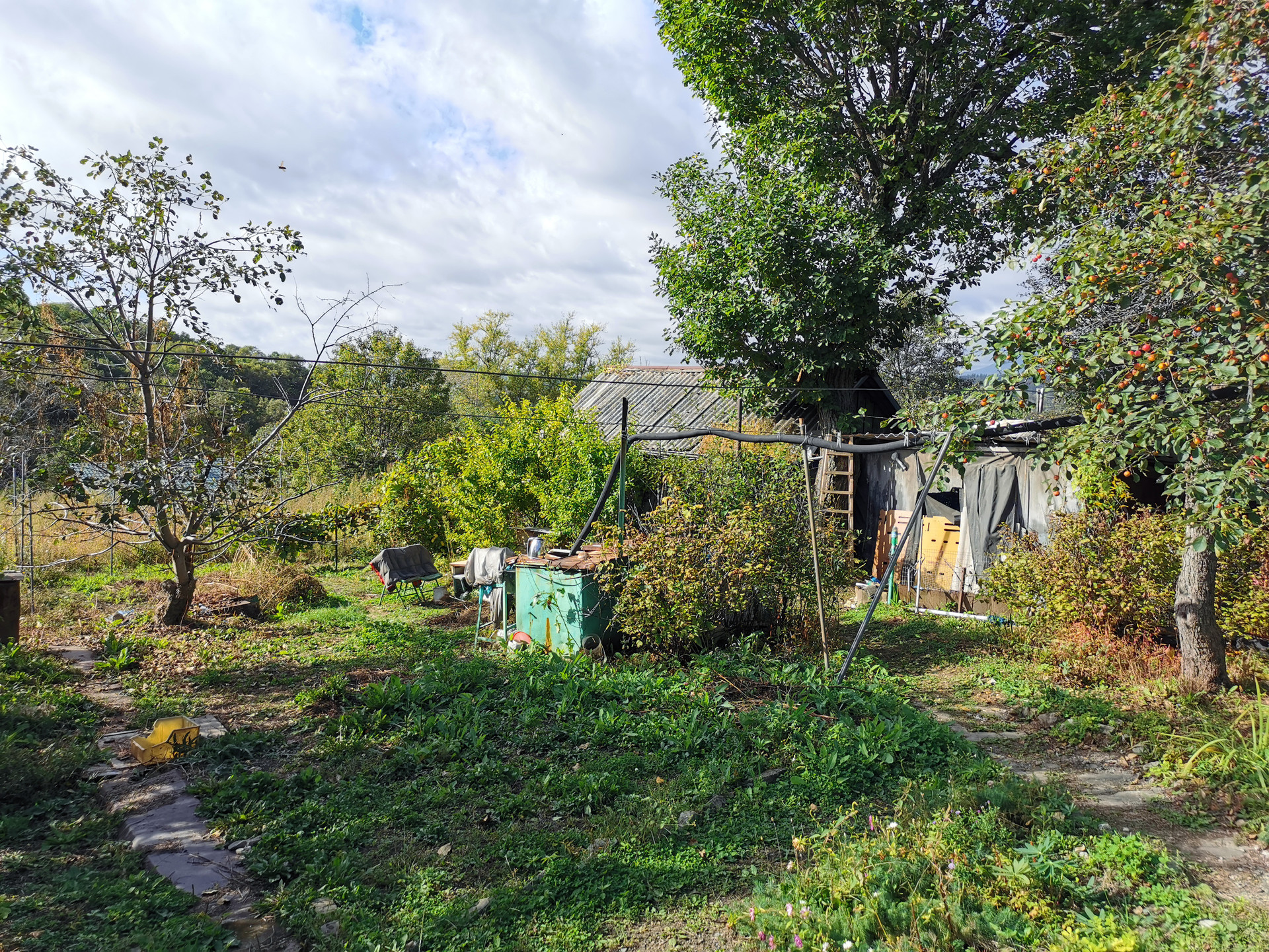 На участке расположены: объединённые в одну постройку с разными входами кладовая и мастерская (оборудована верстаками, прорезиненный пол, погреб); крытый дровник; угольный ящик; площадка под навесом для собаки, либо иных хозяйственных нужд. Готовы рассмотреть обмен на квартиру со всеми городскими коммуникациями в районе 20ой шахты
