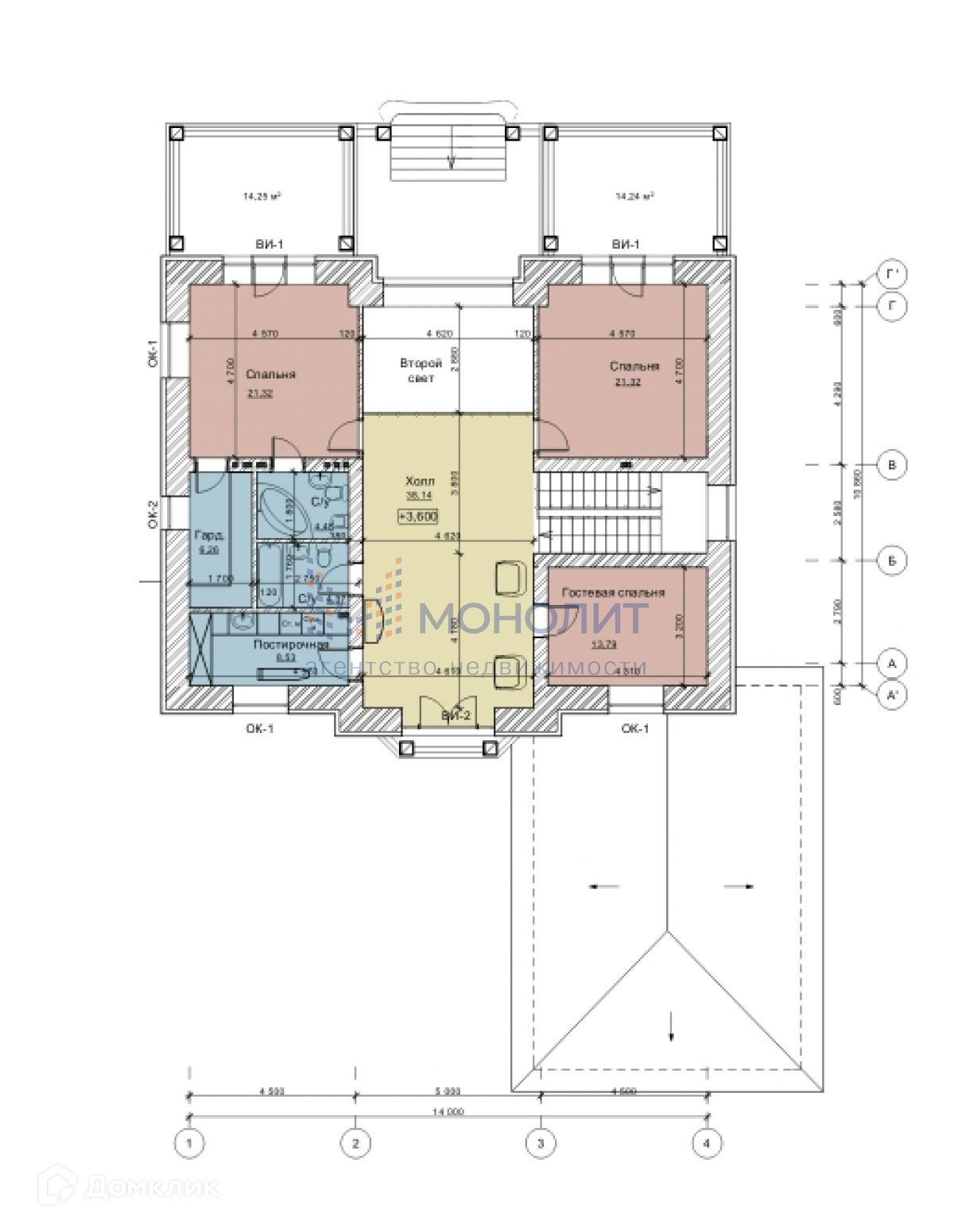 Дом имеет 2 этажа и мансарду, так же имеется большой гараж на 2 машины с доступом в дом.