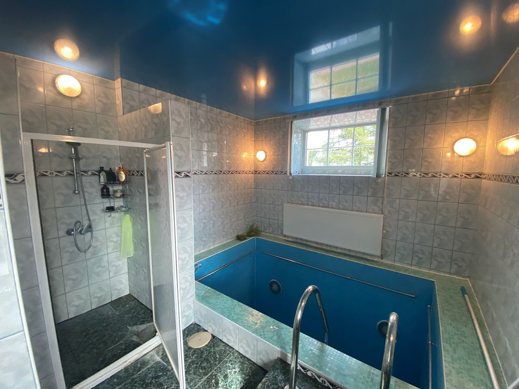 На первом этаже: огромная кухня-столовая, гостиная, каминная, спа-зона с сауной и бассейном, гардероб.