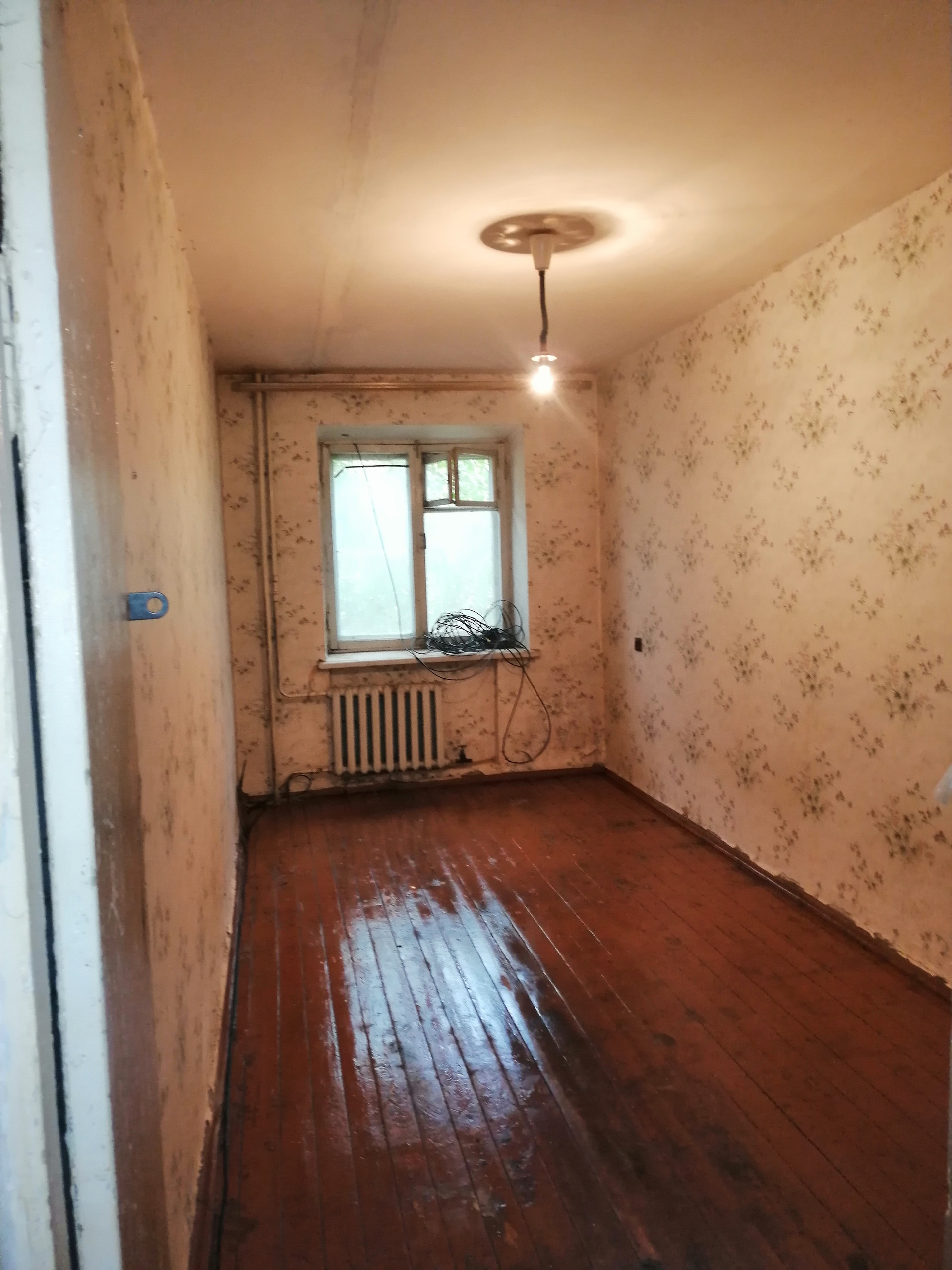 В квартире нужен капитальный ремонт. На кухне окно пластиковое,входная дверь новая. Из зала идёт вход в большую спальню, из прихожей вход в другую спальню. Комнаты большие, большая прихожая, туалет и ванная раздельно. Окна выходят на 2 стороны дома. Сделать ремонт и будет хорошая 3х комнатная  квартира в центре города. От собственников.