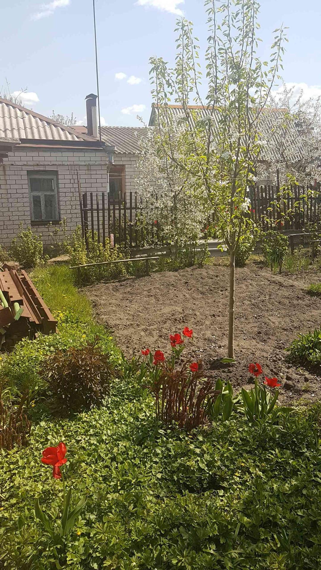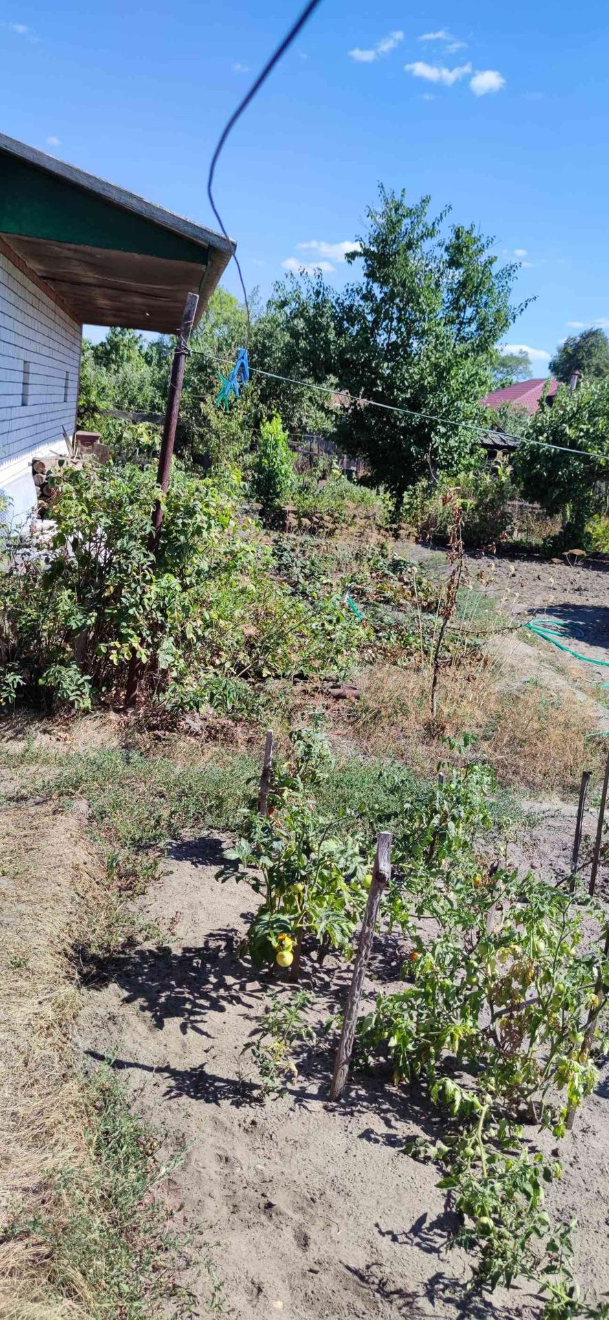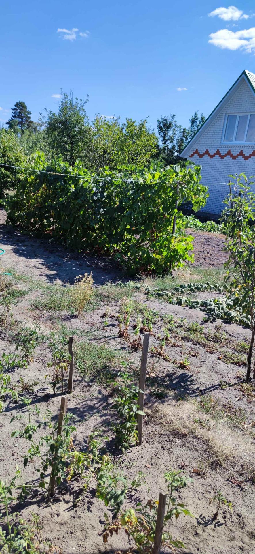 Площадь земельного участка 10 соток. Большой сад и огород, много насаждений. В саду растут вишня, абрикос, груша, виноград, клубника, малина, смородина.