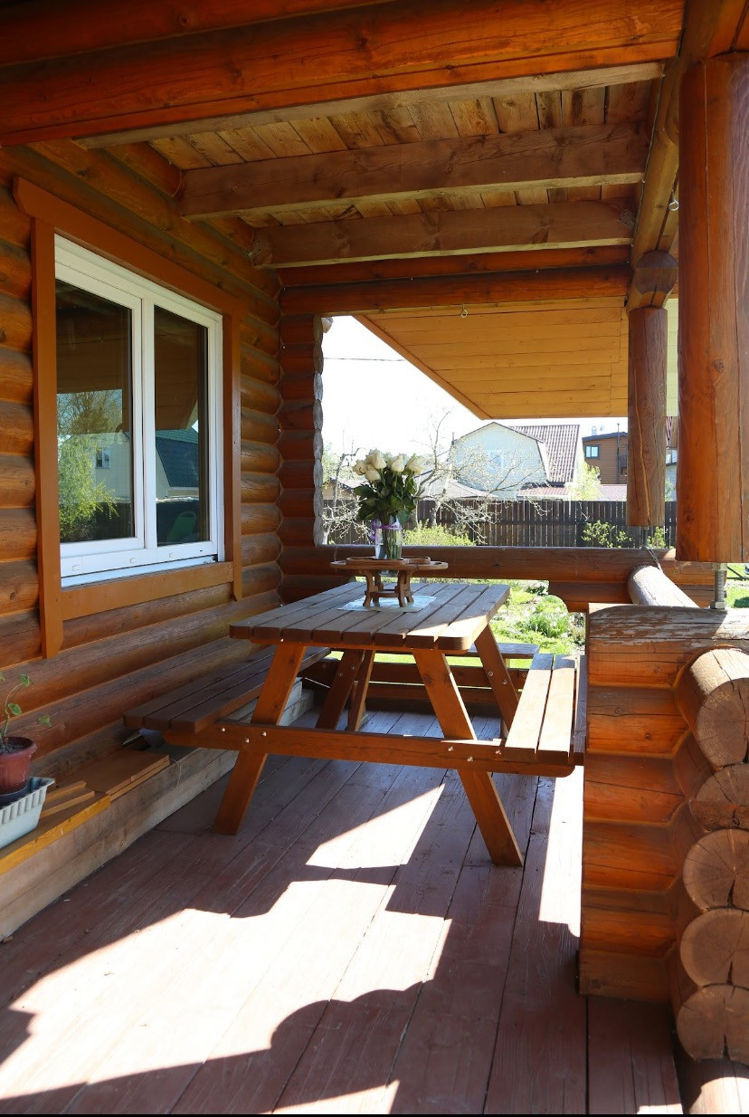 Бревенчатый дом 2018 года постройки на разработанном участке 16 соток в престижном районе Санкт-Петербурга.