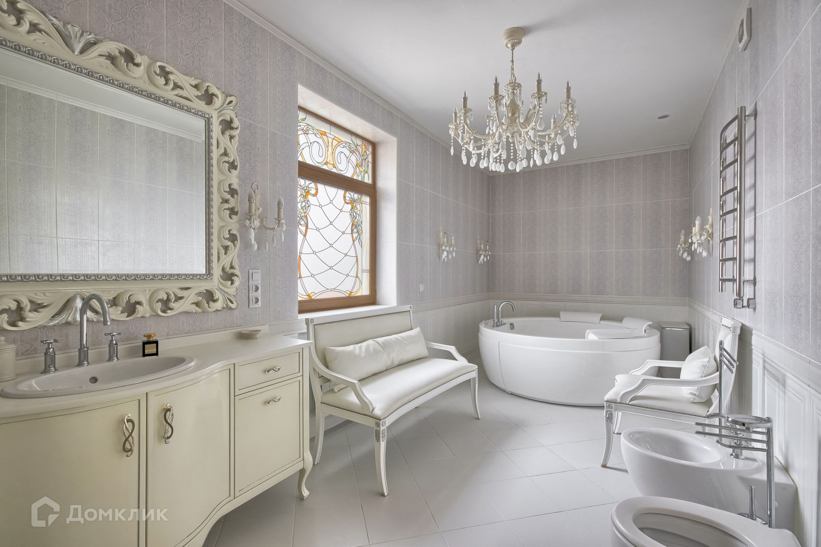 На второй этаж  Вы поднимаетесь по великолепной лестнице из цельного мрамора. Здесь располагаются 2 просторные спальни с продуманной планировкой, в каждой из которых предусмотрены вместительные гардеробные. Детская мастер-спальня имеет свой санузел.  Второй санузел с джакузи и витражами на окнах, сделанными на заказ в монастыре.