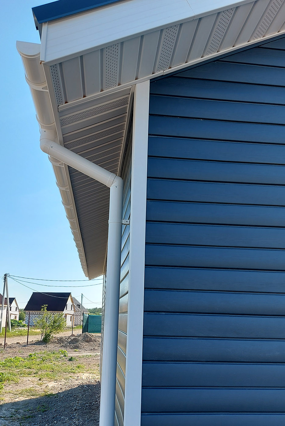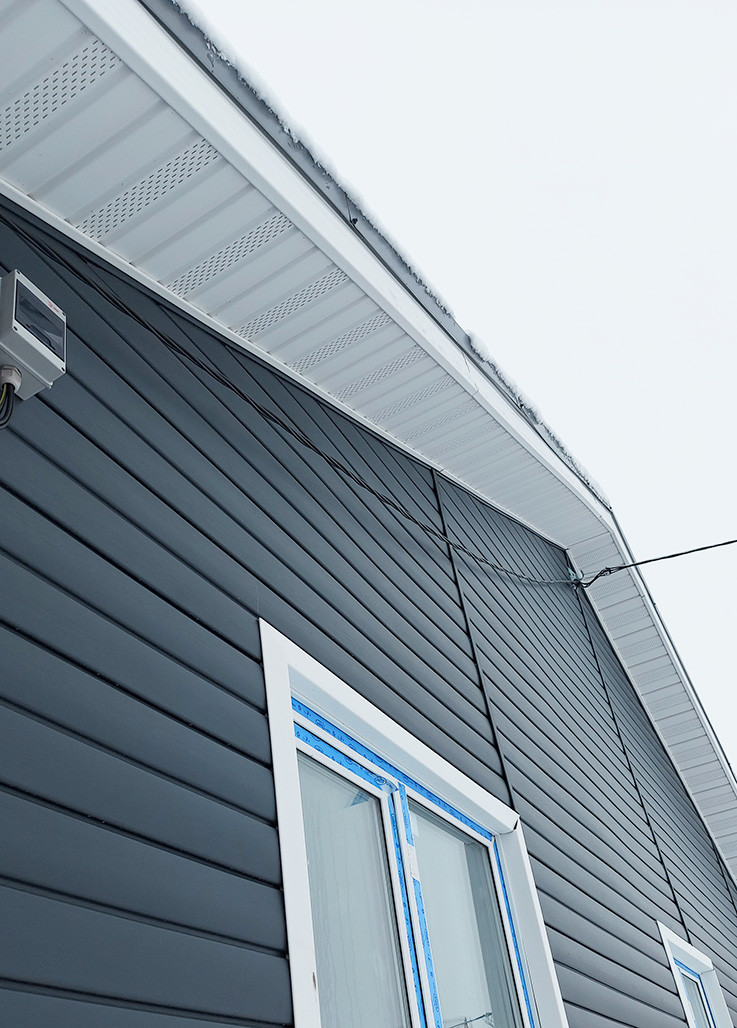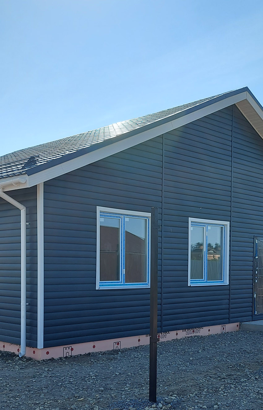 Снаружи дом утеплён и обшит качественным! сайдингом "под брус", плита также утеплена, сделаны снегозадержатели и водосливы. Цветовая гамма дома выдержана в едином стиле - цвет мокрого асфальта.