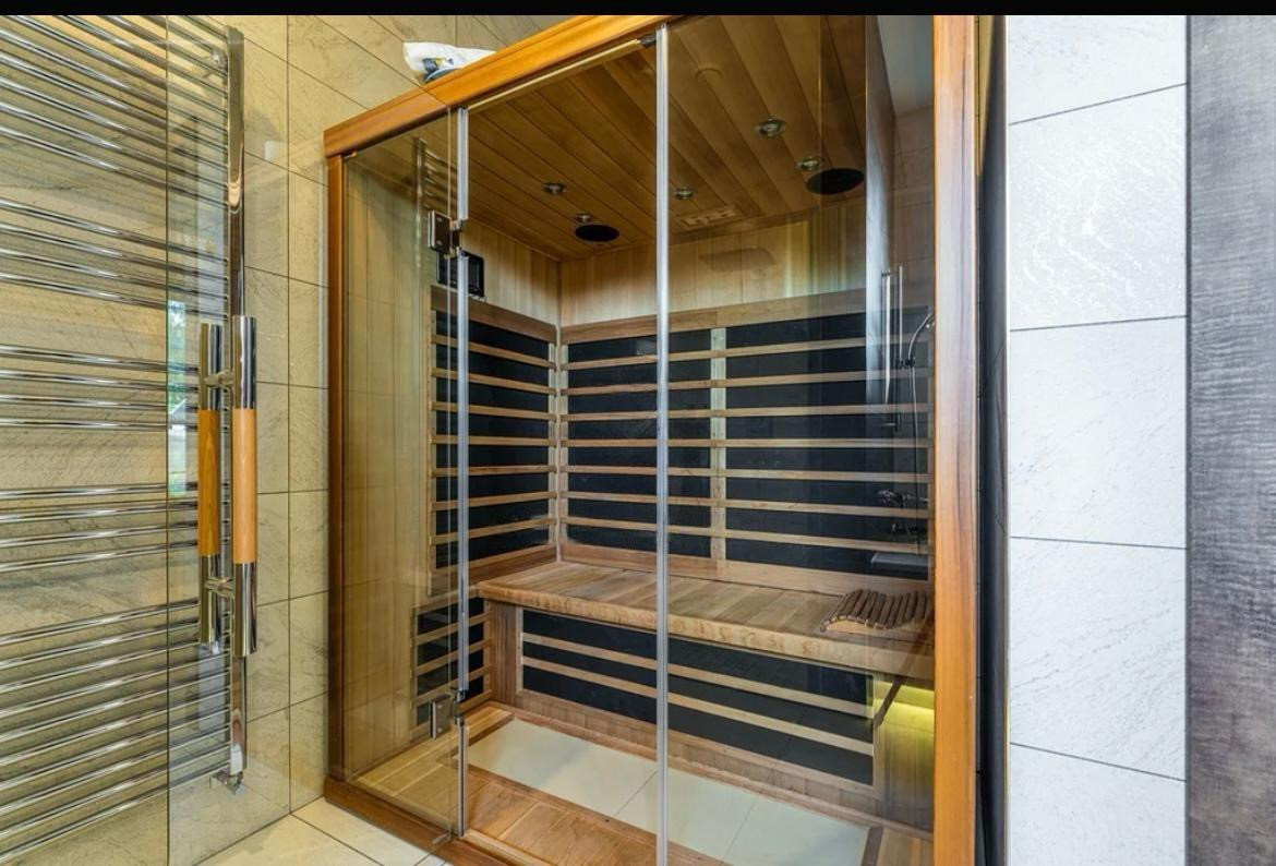 В доме есть инфракрасная сауна, тёплый гараж на два автомобиля. Также на втором этаже расположен спортивный зал, который при желании можно переделать,например, в бильярдную.