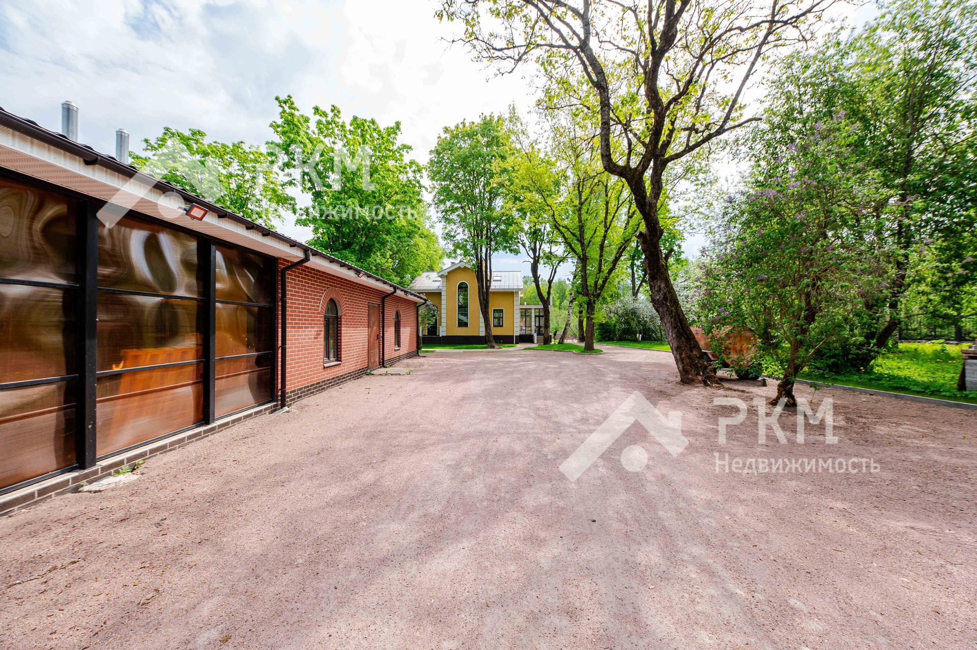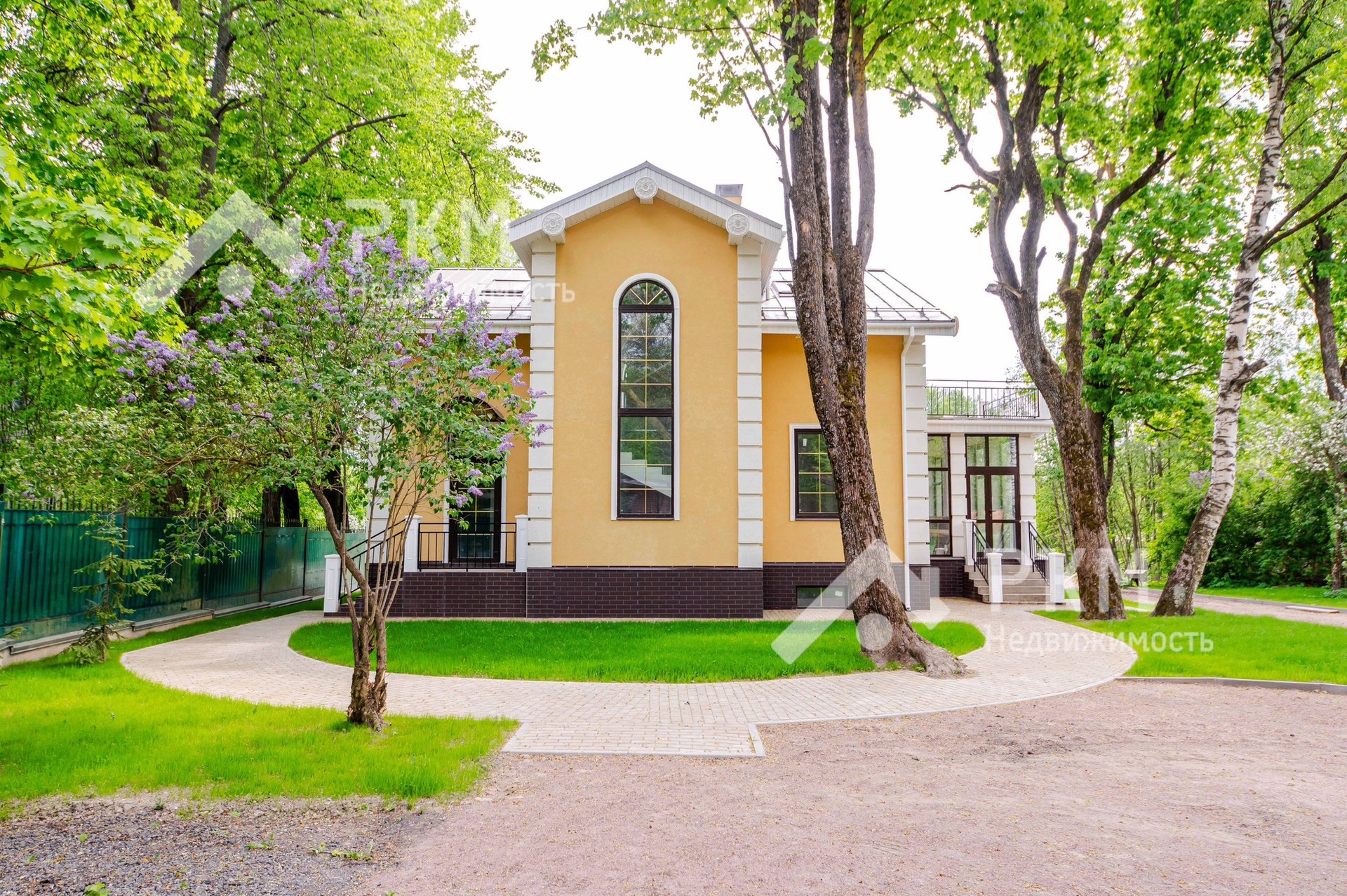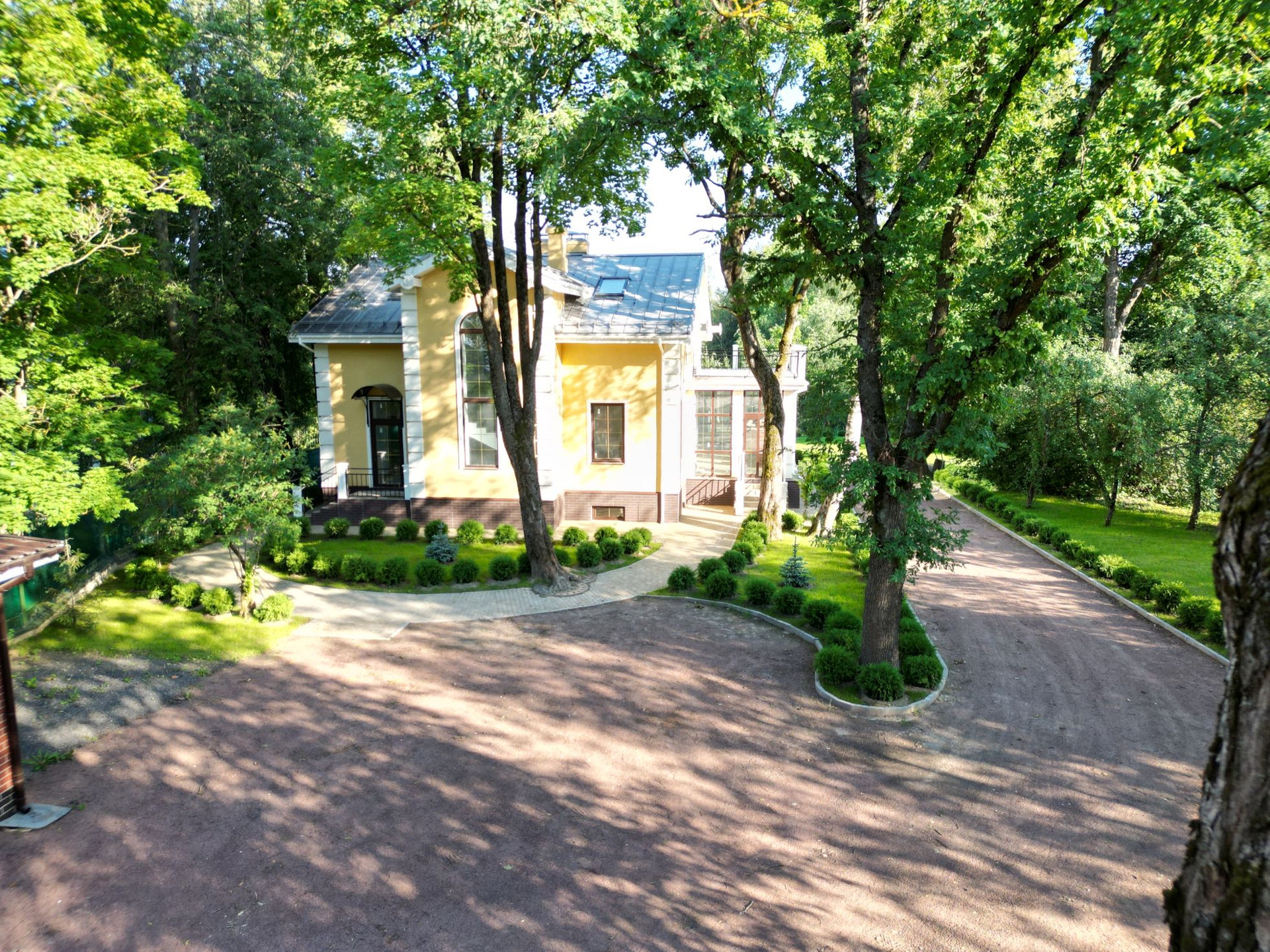 На участке выполнен ландшафтный дизайн: ухоженные газоны, вымощенный двор, где можно поставить 5-6 автомобилей.