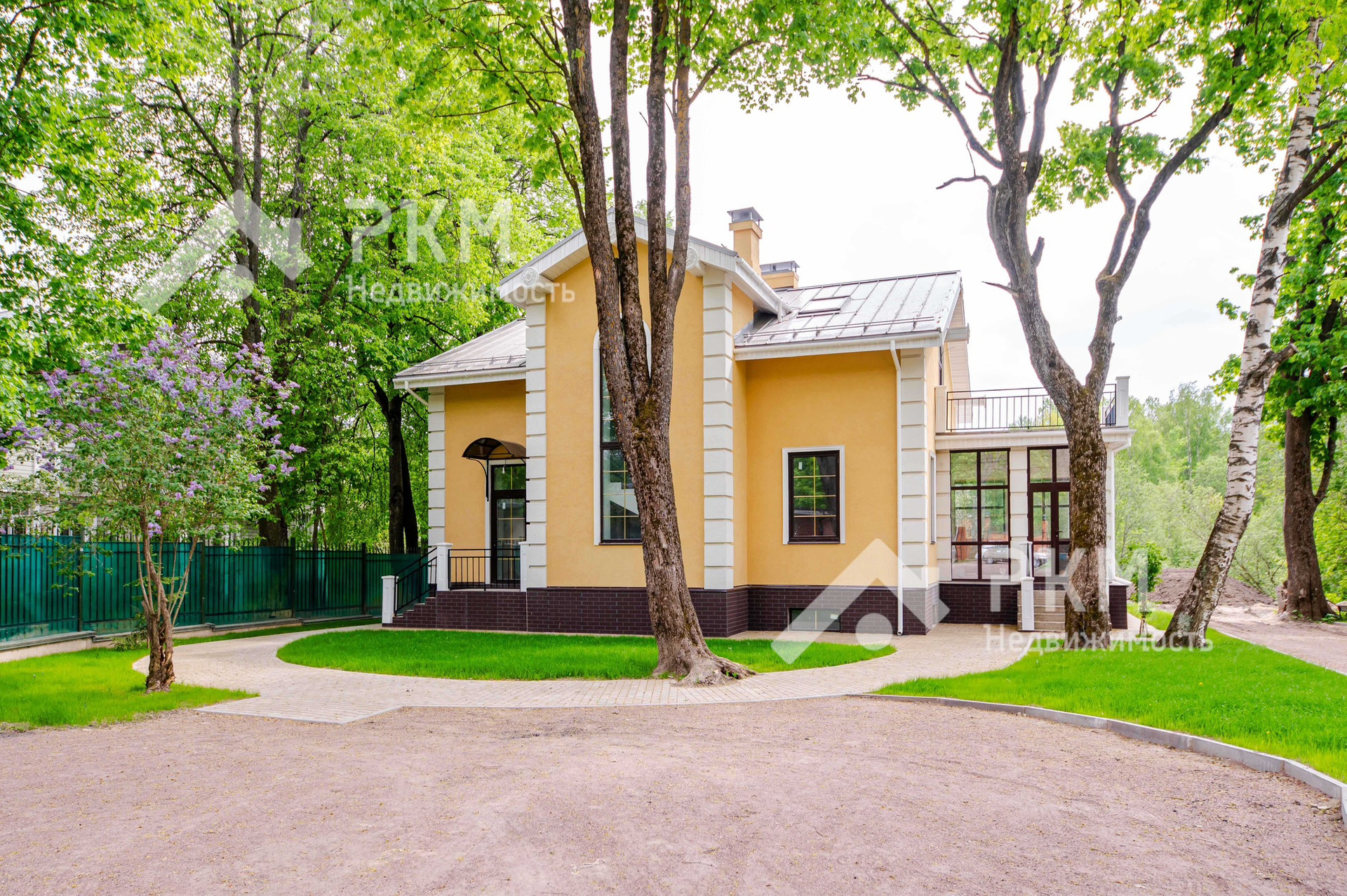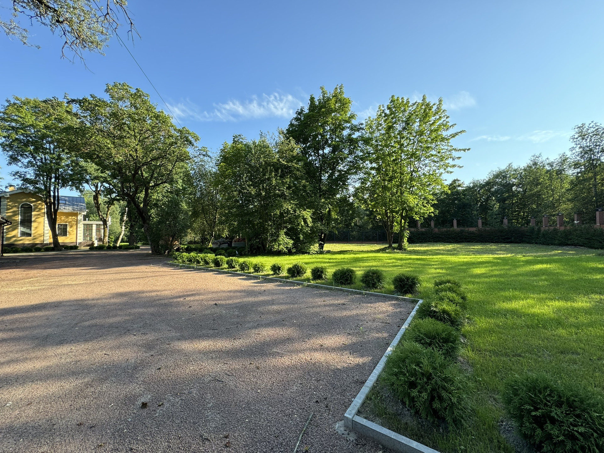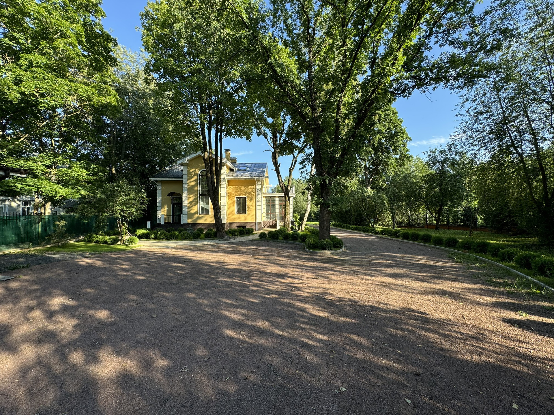 На участке выполнен ландшафтный дизайн: ухоженные газоны, вымощенный двор, где можно поставить 5-6 автомобилей.