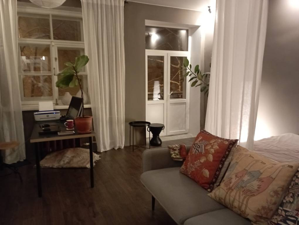 Квартира с отличной планировкой, дизайнерским ремонтом и высокими потолками в сталинском доме!Произведена замена труб, полов, новая электрика, пол ламинат,окна все и утеплены по шведской технологии, отреставрированы 3 окна. Встроенная кухня  остается в квартире.  Шикарная ванная комната  с ванной из искусственного камня и окном, в ванной  теплый пол. Квартира двухсторонняя с большим балконом, где приятно пить кофе по утрам и наслаждаться пением птиц. Павловский парк и дворец, а также парк Мариенталь с замком БИП в 5 мин ходьбы. Рядом находится Храм свт.Николая Чудотворца. До ж/д Павловск 25 мин пешком или 10 мин на транспорте. Ходят маршрутки до м.Московская,Купчино. Павловск для тех, кто любит спокойную и размеренную жизнь. Вся инфраструктура в шаговой доступности. Полное сопровождение сделки. Скидка 0,3% на ипотечную ставку от сбербанка. Прямая продажа, 1 взрослый собственник.