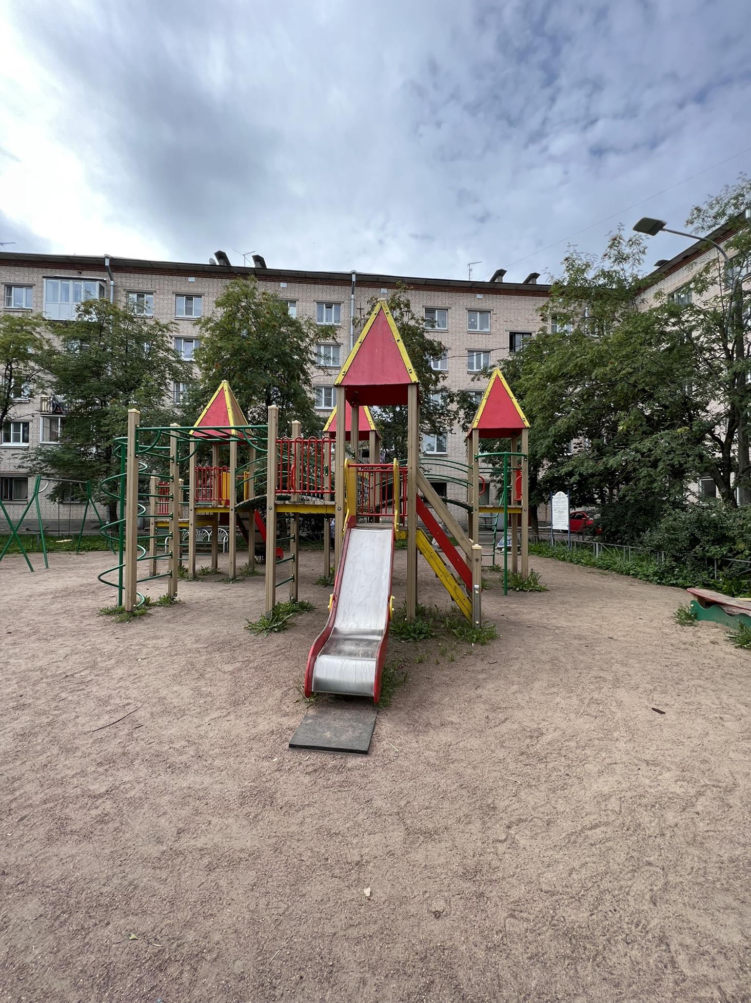 Во дворе детская площадка.