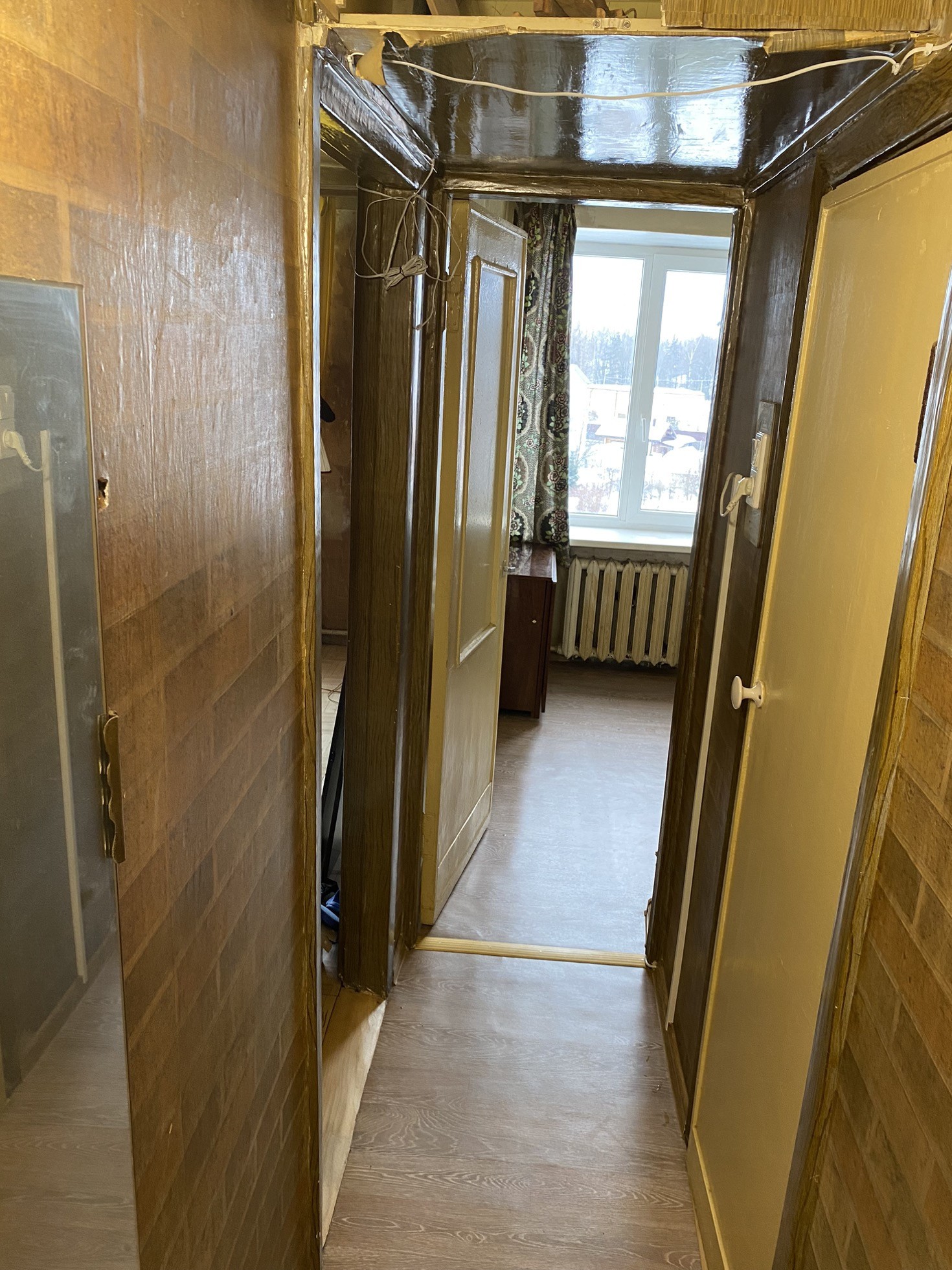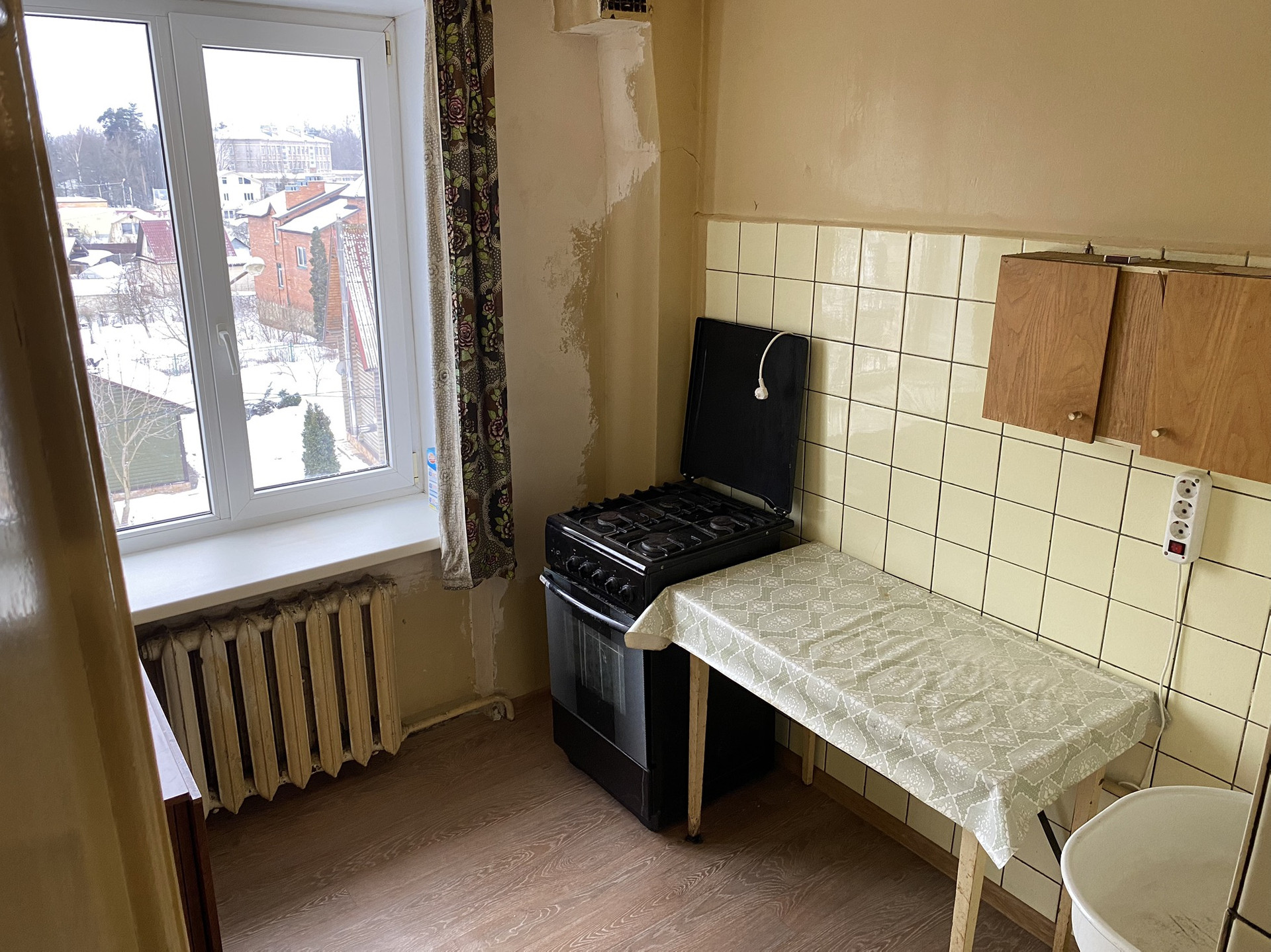 Квартира требует ремонта. Часть работ уже сделали. Обои не поклеили. Видно на фото. Переклеив обои, можно жить. Горячая вода -газовая колонка.