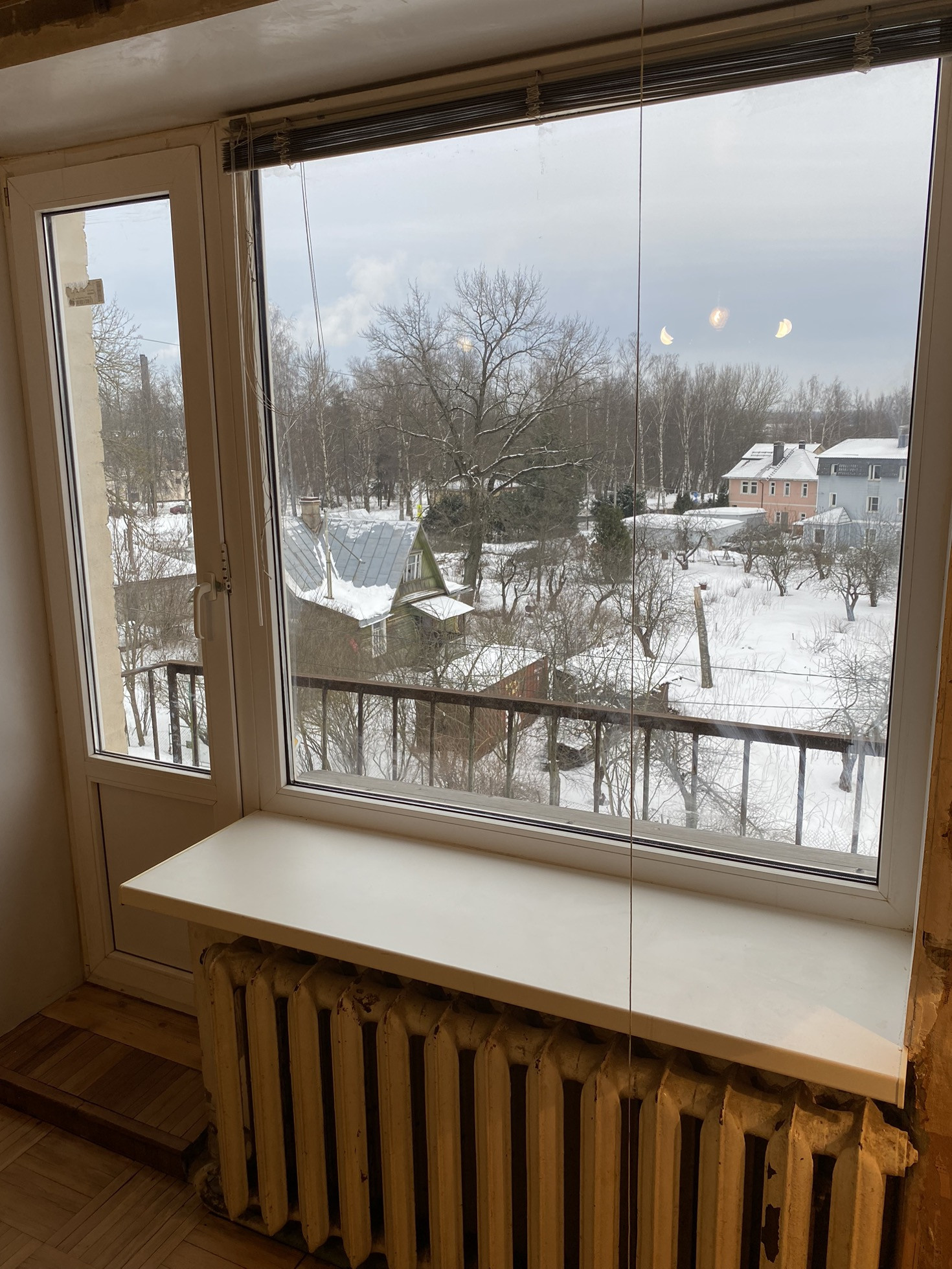 Квартира находится на последнем 4м этаже, крыша не течет, это можно видеть по чистым, без подтеков потолкам. Есть отличный балкон. Окна выходят на тихую улицу, машины по ней ездят редко, т.к. через дорогу частный сектор.