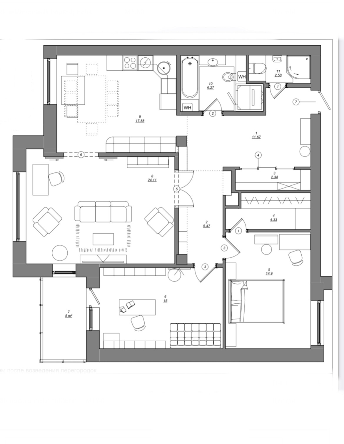 Жилая площадь 62 м2
