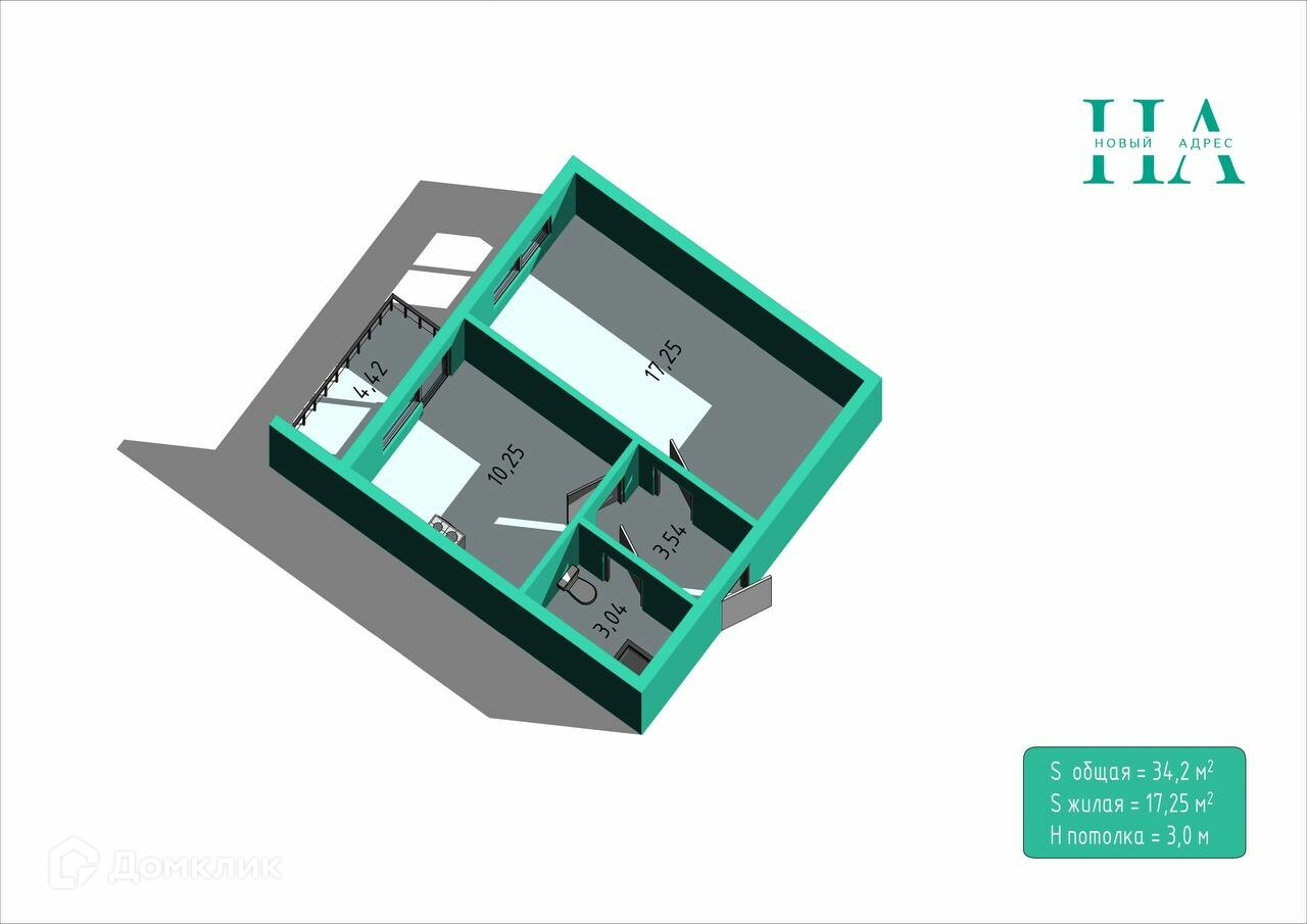 Общая площадь 34.2 м2