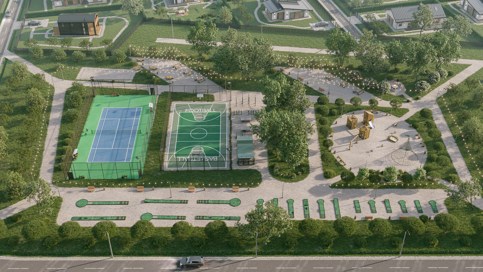 Общественные зоны. 1Га с зонами прогулок, BBQ и игровыми площадками