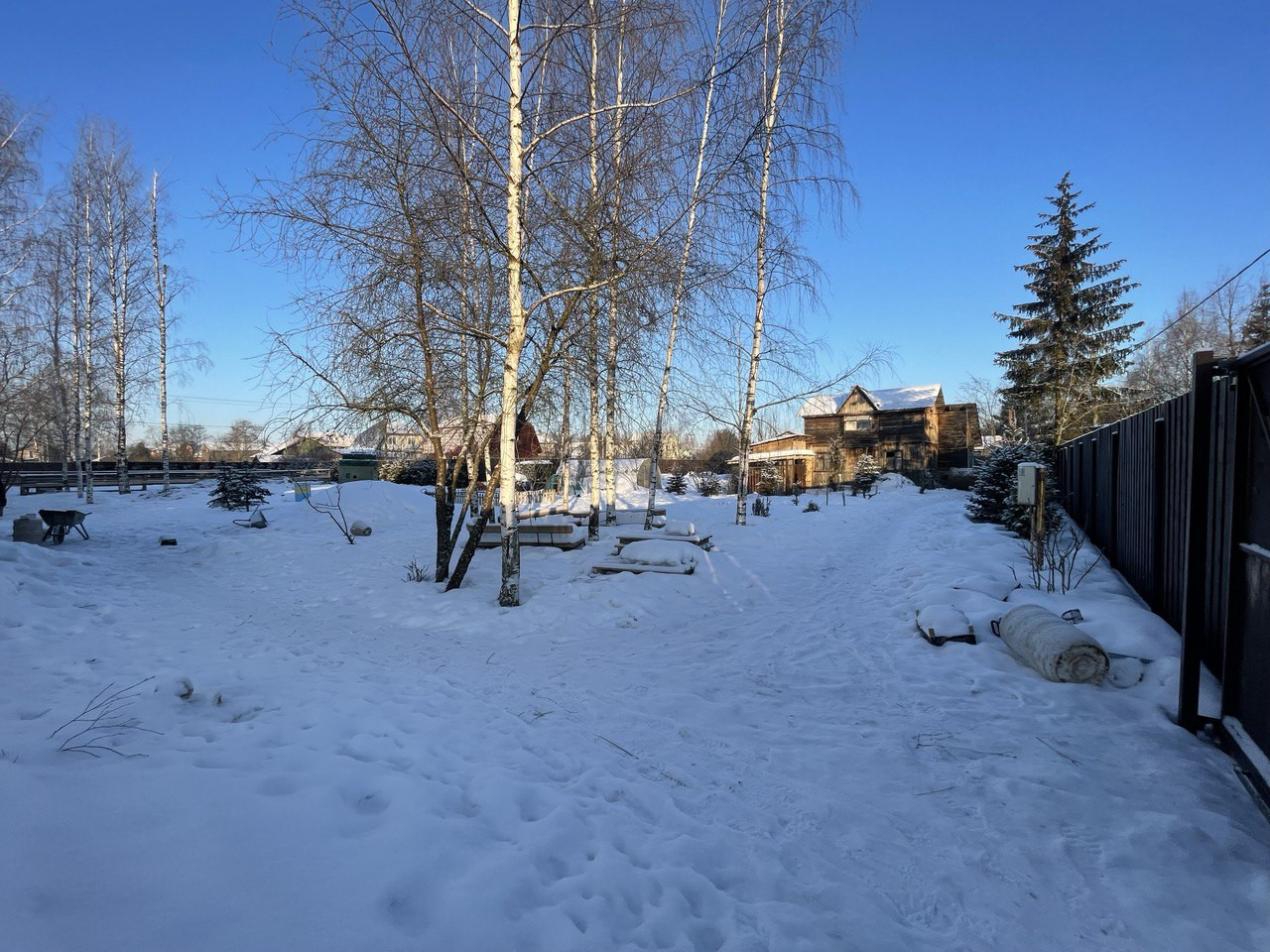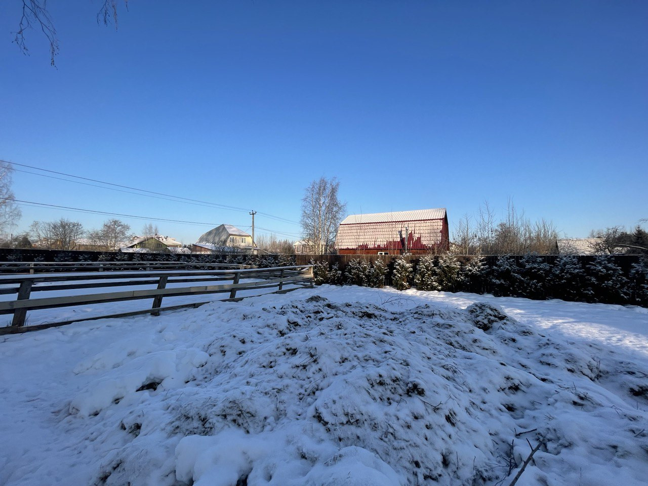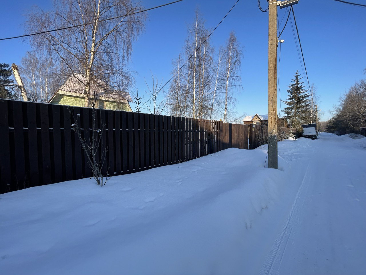 Участок огорожен забором, хорошие соседи. Проведено электричество, водопровод и магистральный газ, по границам участка.