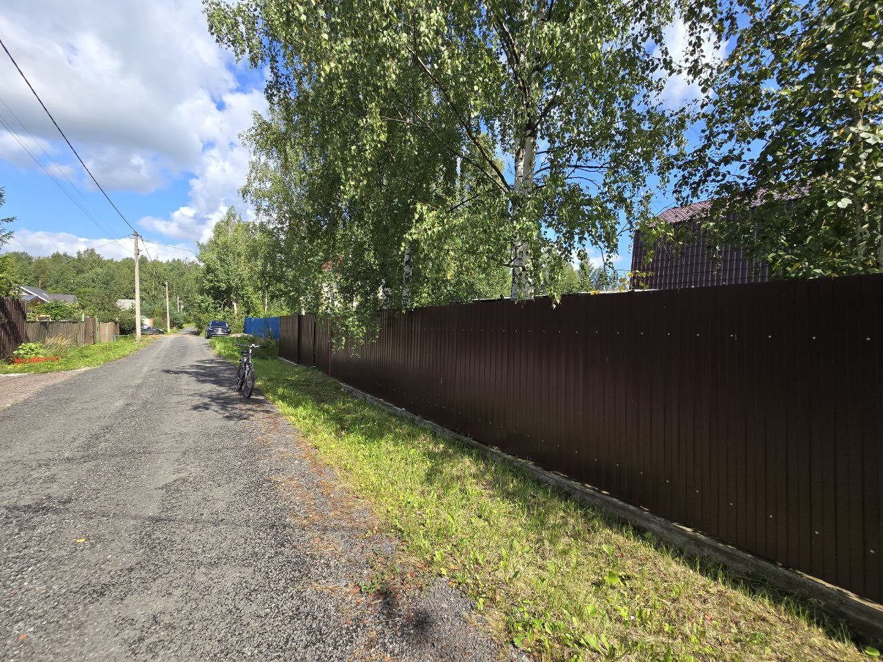 Участок огорожен забором, хорошие соседи. Проведено электричество, водопровод и магистральный газ, по границам участка.