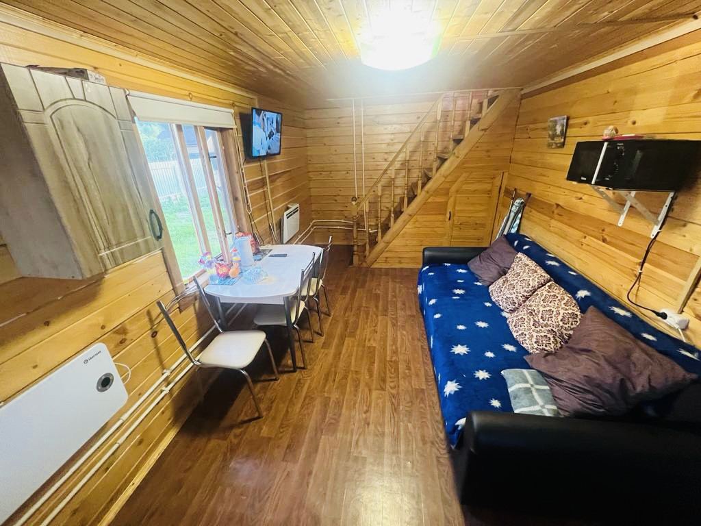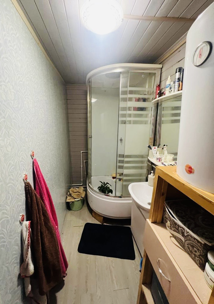 Разведенная электрика, свежий ремонт. Две спальные комнаты, большая Кухня-гостиная, санузел совмещён, большая веранда, позволят со всеми удобствами проживать большой семье или принимать к себе гостей, которые ещё не раз поздравят Вас с покупкой такого замечательного дома. Сзади дома расположена баня из мощного массивного бревна! Нужно доделать совсем не много. Так же есть: детский домик, сарай, вольеры для собак. На территорий и в доме установлены камеры видео наблюдение, остаются при покупке дома. Отопление можно регулировать с телефона).