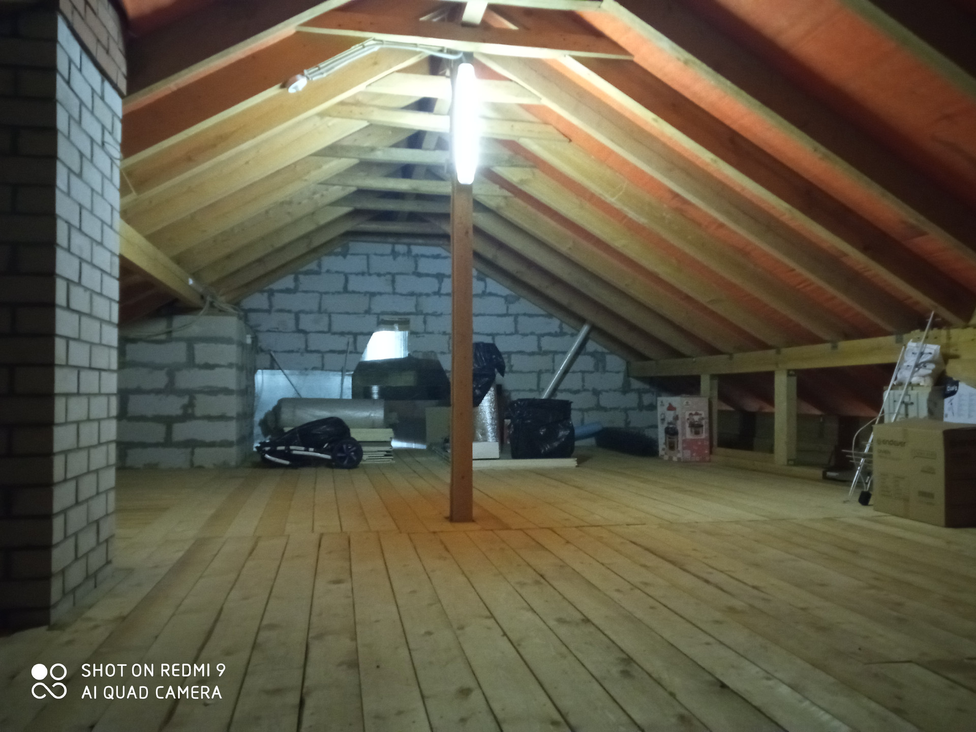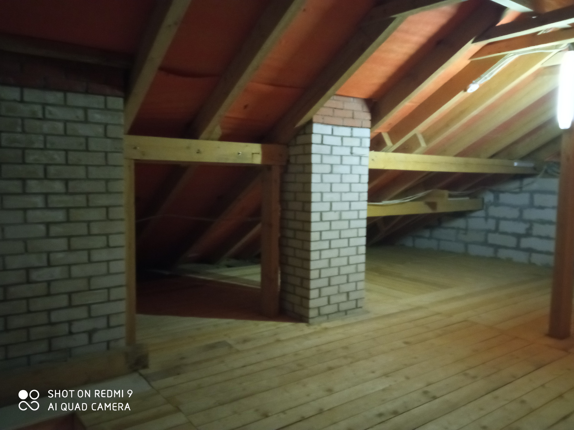 При необходимости, есть куда расширяться, можно сделать третий этаж. Мансарда по периметру всего дома 90 кв.м. Доступ на мансарду оборудован скрытой выдвижной лестницей на потолке второго этажа, выведено отопление.