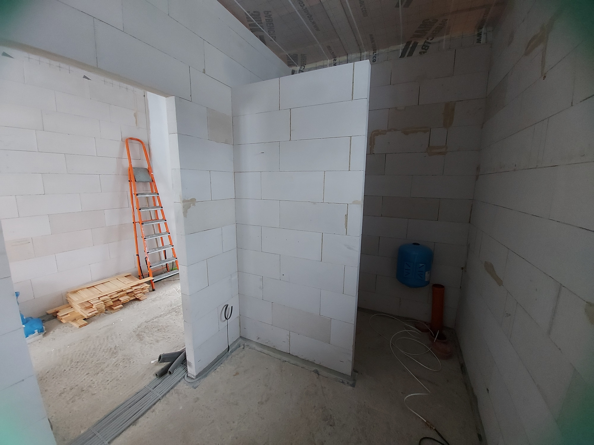 Внутренние несущие стены и межкомнатные перегородки из прочного блока d500.