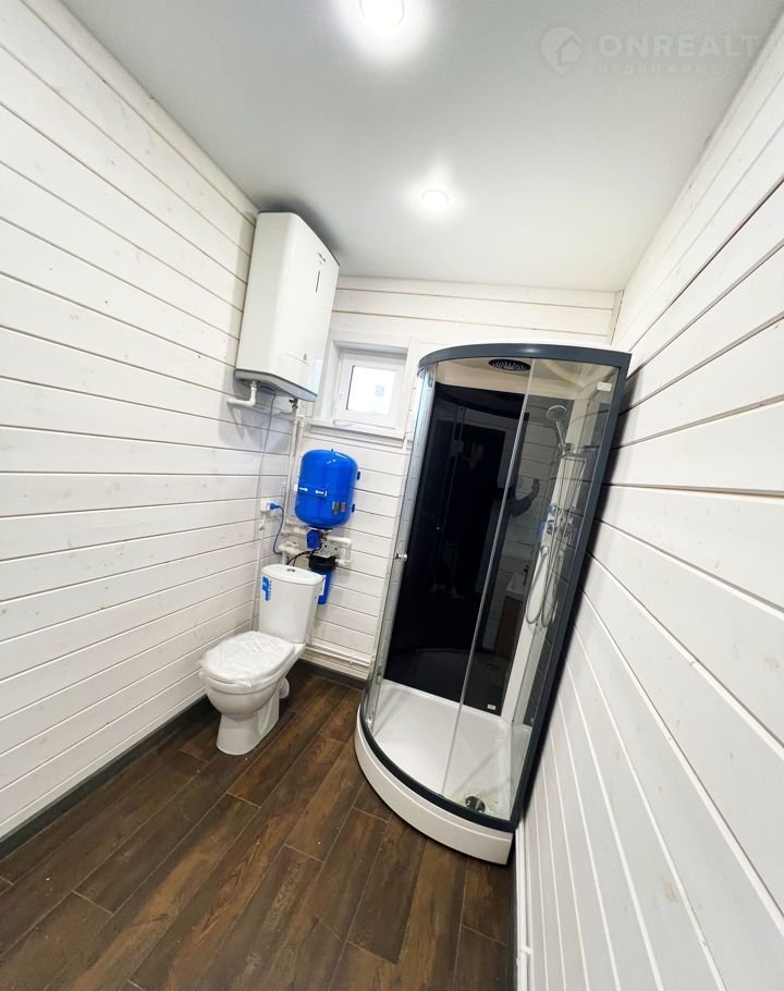 Коммуникации включают воду (скважина на участке, проведена в кухню и санузел), канализацию (переливной септик), электричество (15 кВт) и отопление (электричество, конвекторы с терморегуляторами). Дом построен с использованием каркасной технологии с утеплением стен, пола и потолка. Фундамент на бетонных сваях, крыша выполнена из металлочерепицы. Входная дверь металлическая, межкомнатные двери качественные, окна - пластиковые стеклопакеты. Дом имеет свой кадастровый номер и стоит на учете как жилое помещение.