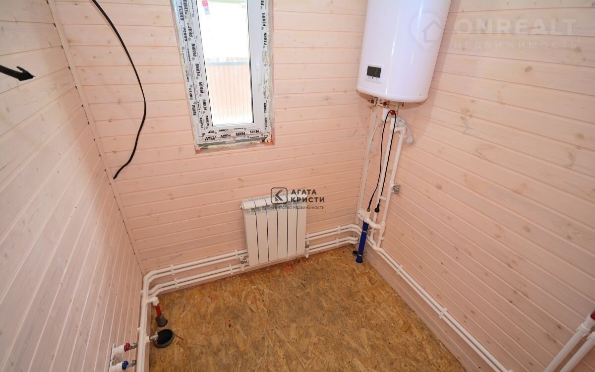 Установлены электро-котел, бойлер, произведен монтаж алюминиевых радиаторов.