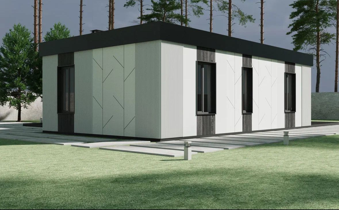 Современный энергоэффективный  дом  высокой фабричной готовности с ПЛОСКОЙ КРОВЛЕЙ для постоянного проживания!