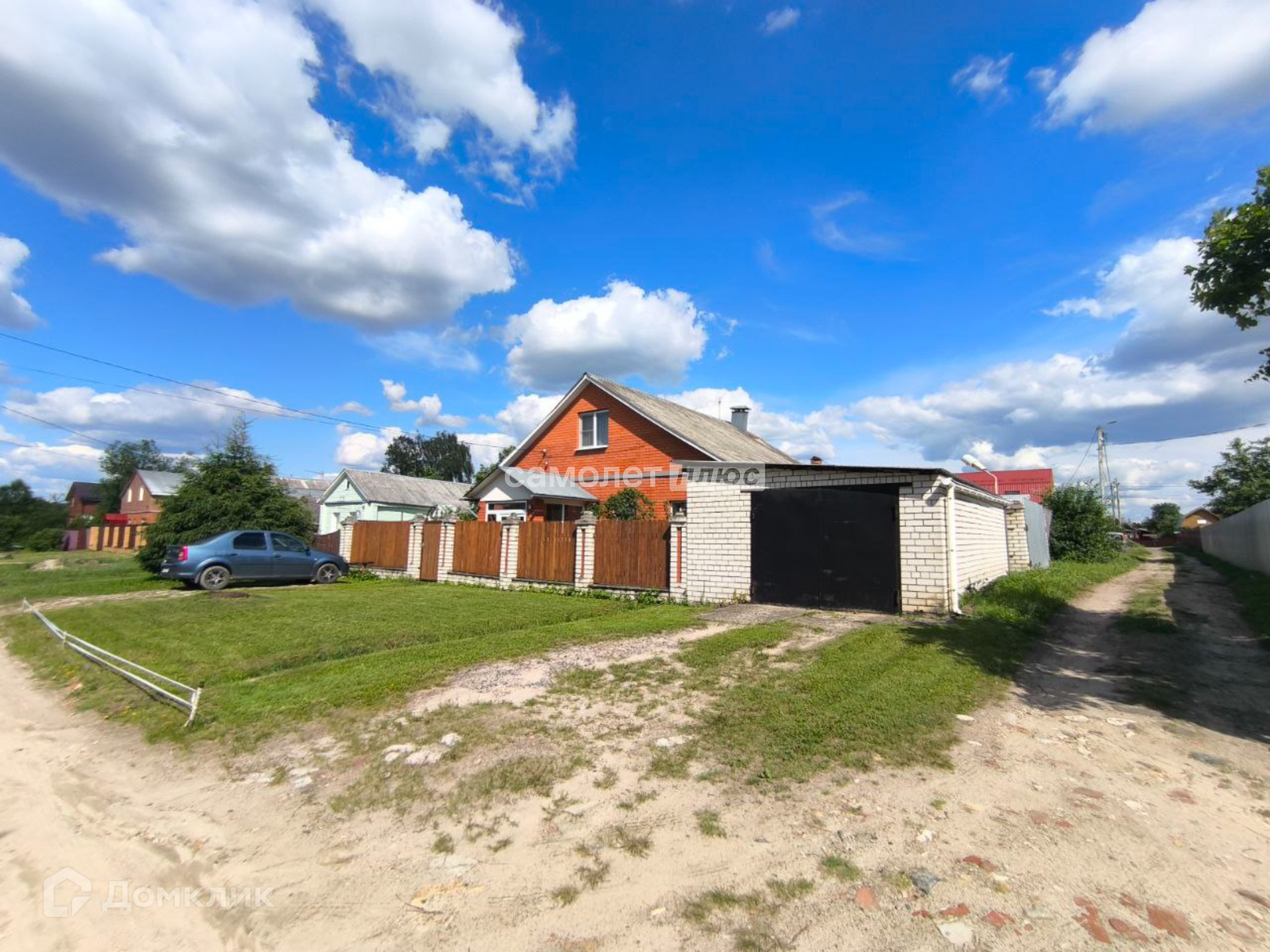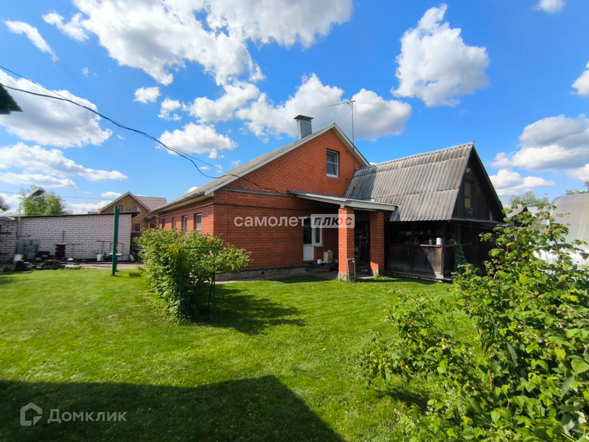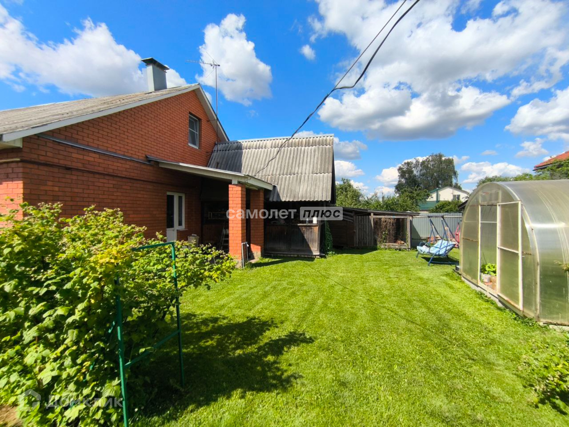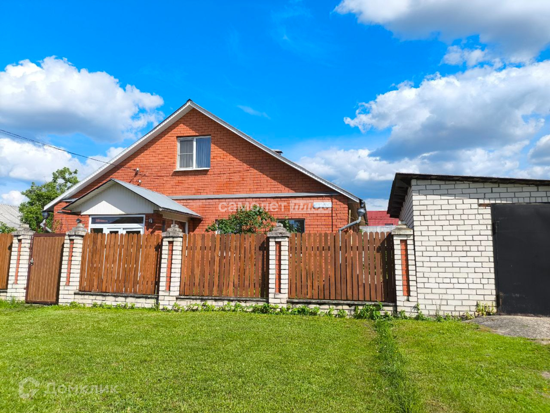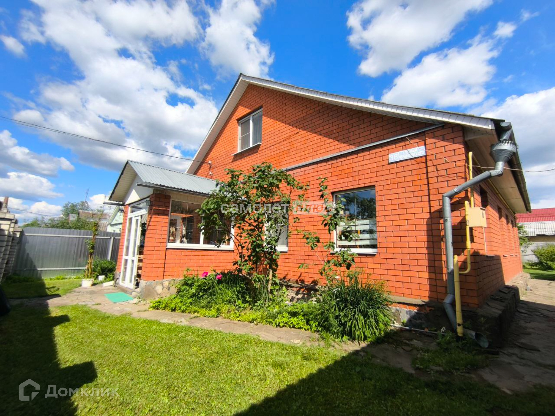 Дом пострен из кирпича, стоит на ухоженном участке правильной формы.