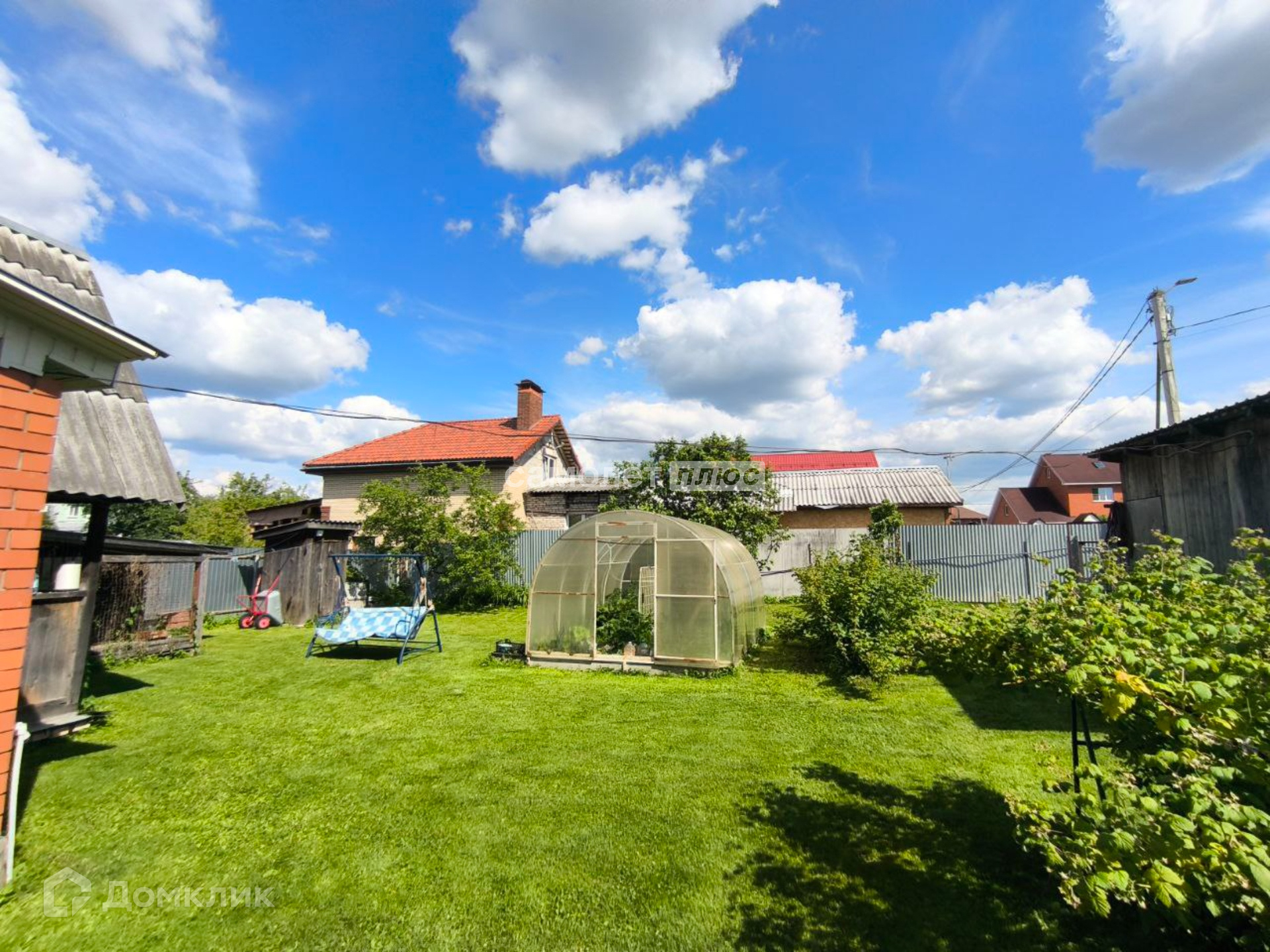 Помимо дома, на участке распологаются гараж (на 1 машину), веранда, хоз. блок с птичником и вольер для собаки.