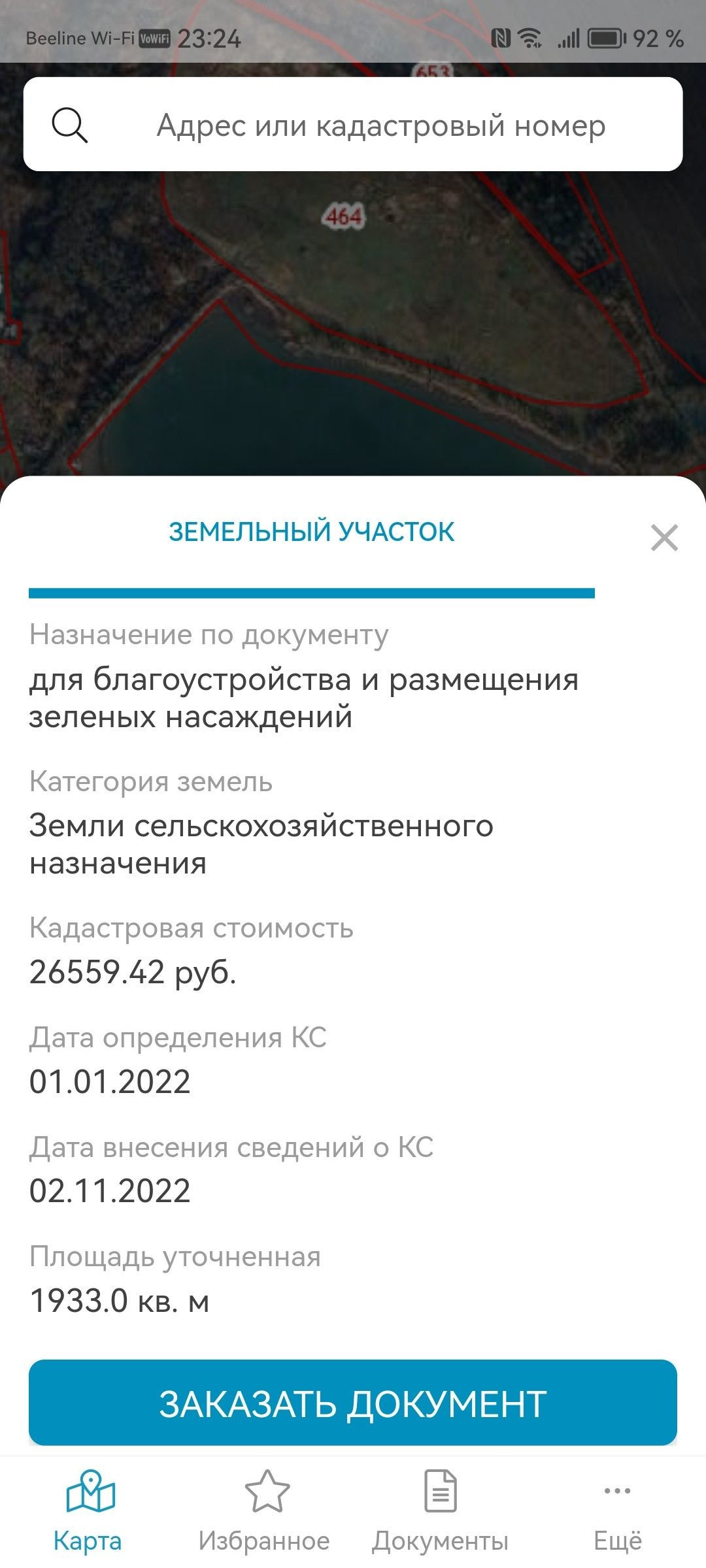 Площадь участка 1933 сот.