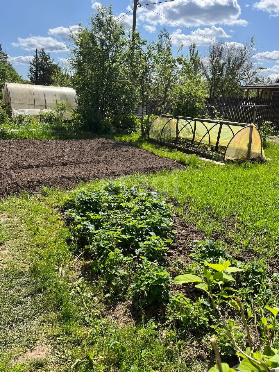 На участке есть теплица, сарай, водоем.