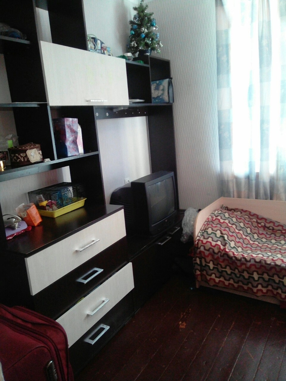 Продам комнату по адресу Русанова 32.В комнате остаётся мебель:стенка, диван, холодильник, шкаф, плита, кухонные шкафы. Комната очень тёплая, проводка своя т.к. отдельный счетчик.